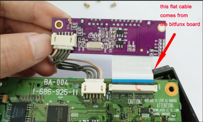 Utilizamos el cable plano de la placa sata Bitfux para conectar la placa al adaptador de red Sony.