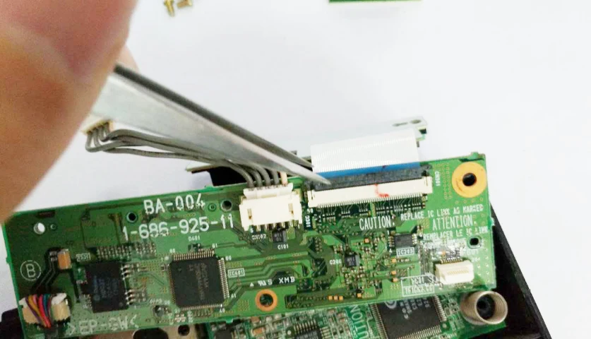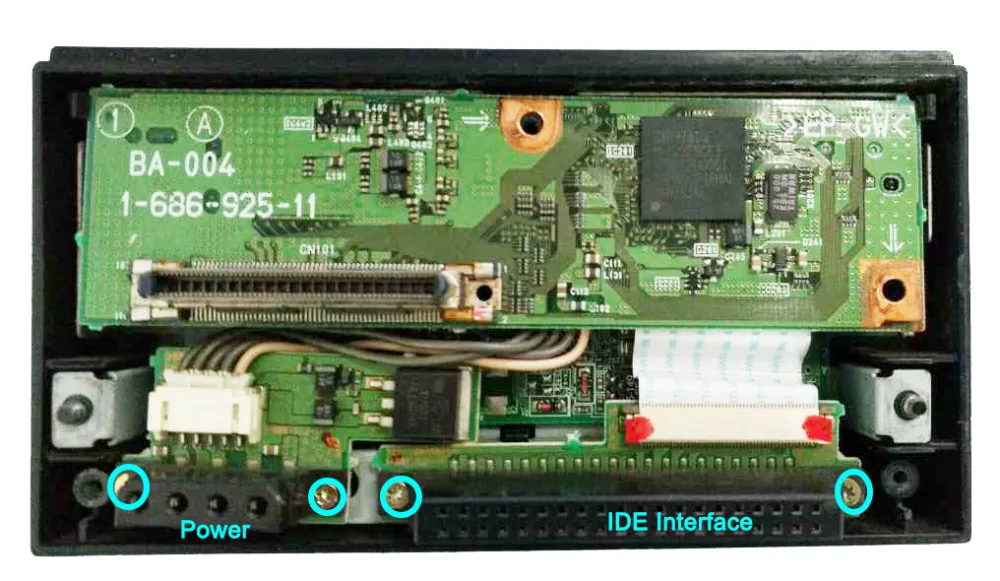 Después de eso, retire la placa de circuito IDE y la placa de circuito de alimentación.Tenga cuidado al quitar el cable plano FPS.Es importante que no utilicemos el cable plano Sony IDE FPS, debe mantener alejado el cable plano original Sony.