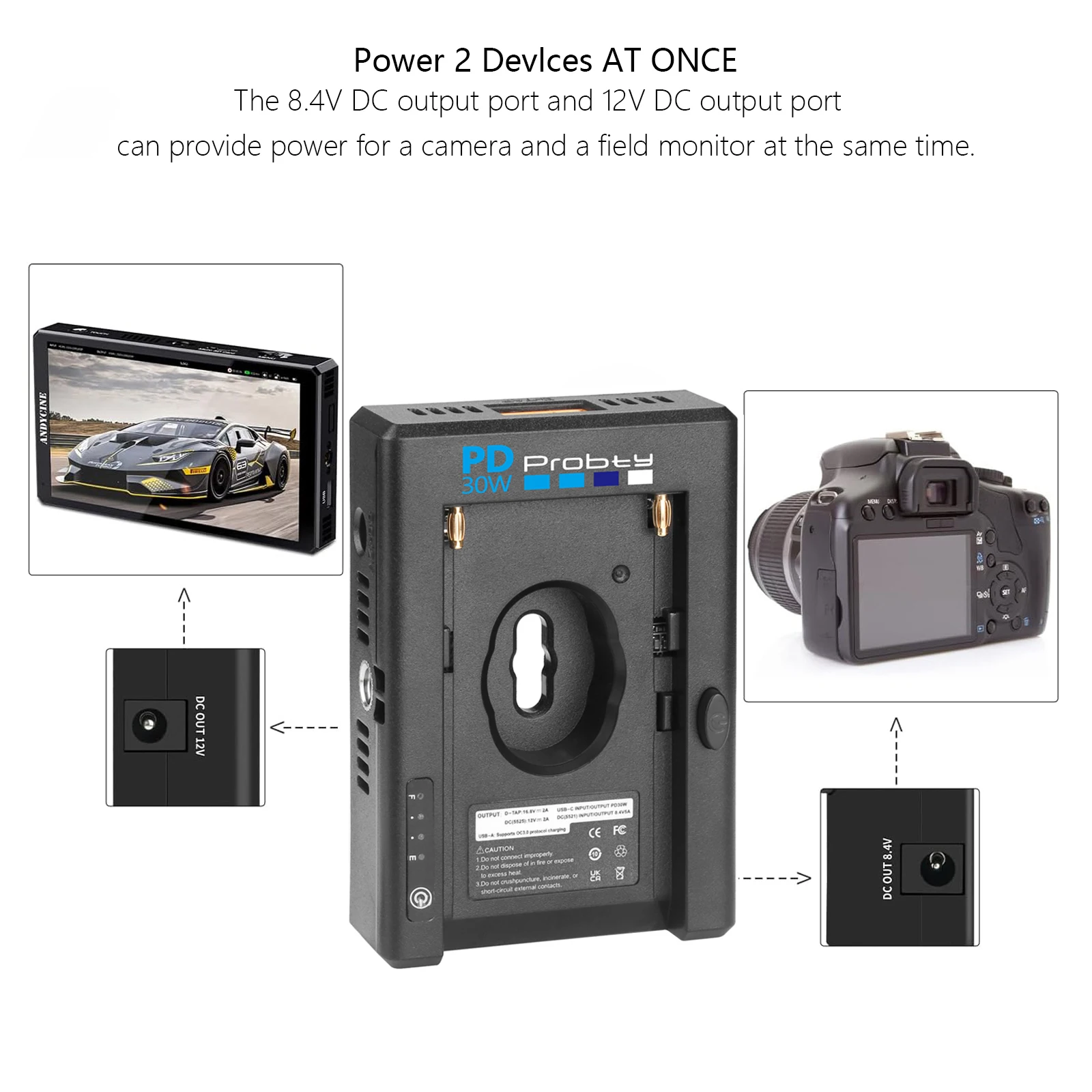 1. Placa adaptadora de carga de batería PD30W para baterías de la serie NP-F, como NP-F550, NP-F750, NP-F970, etc.