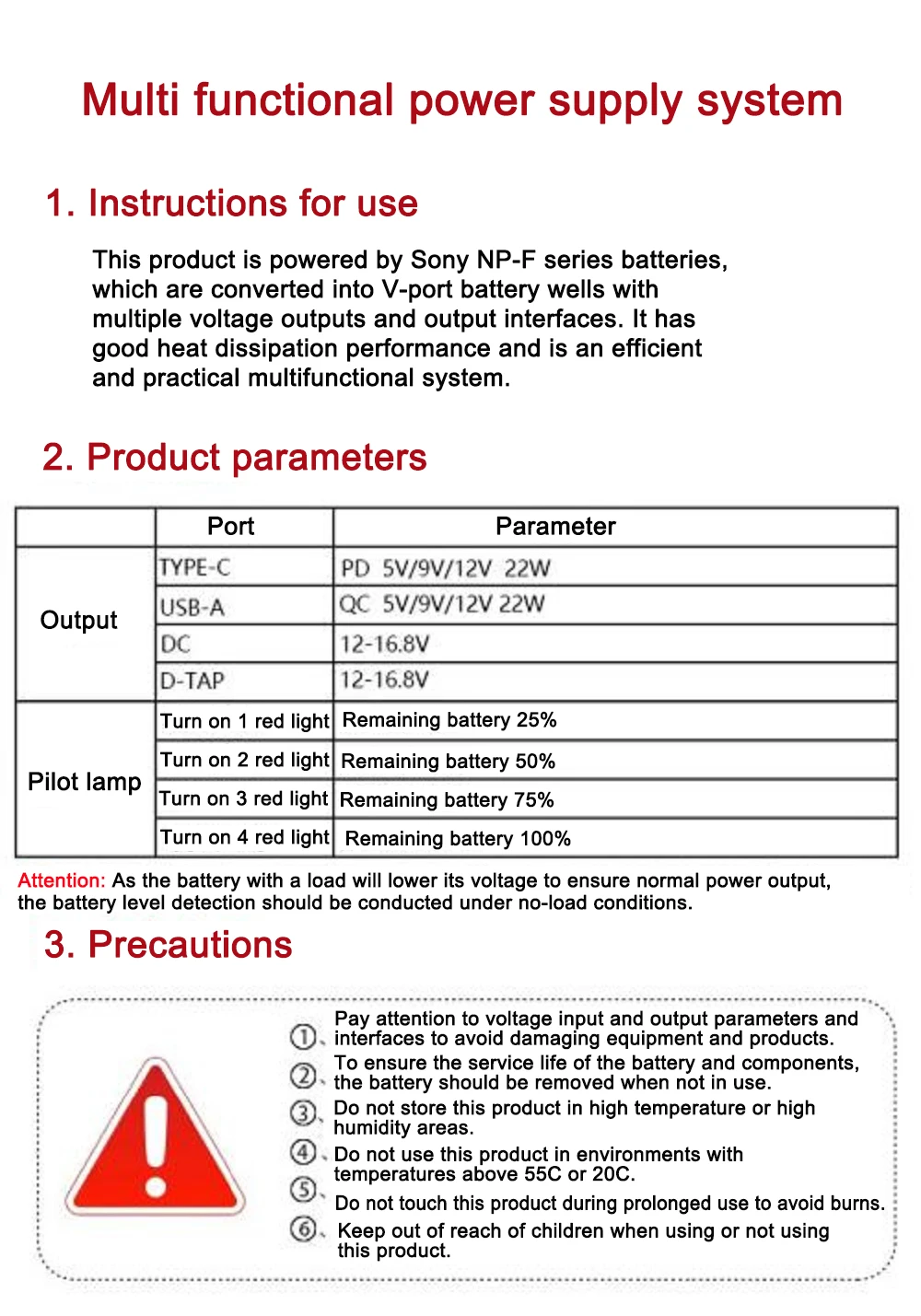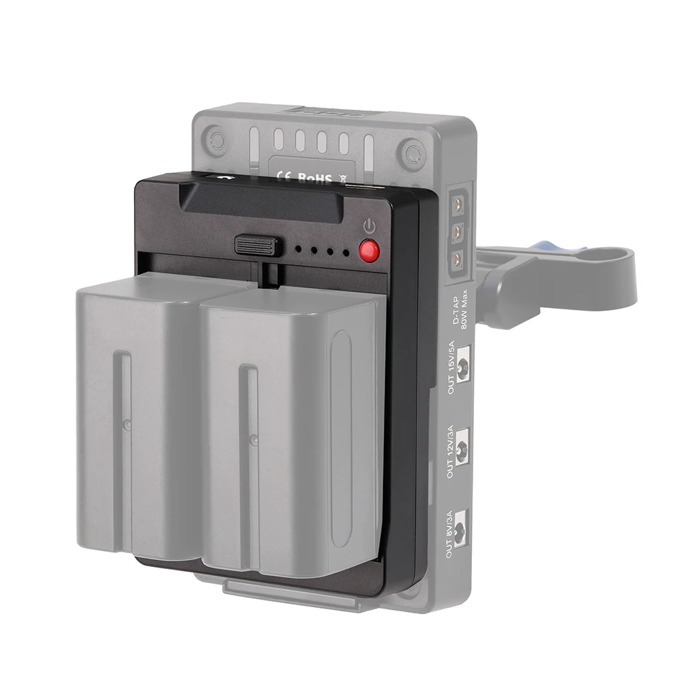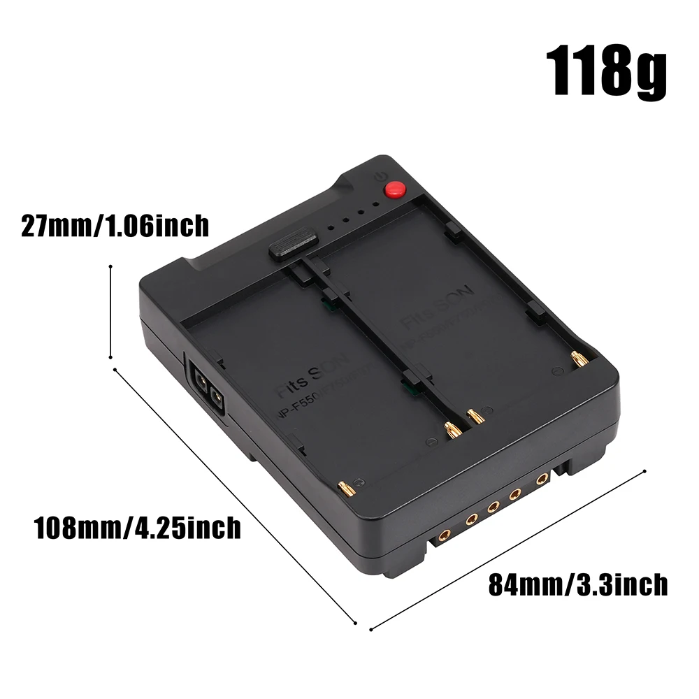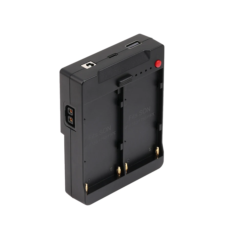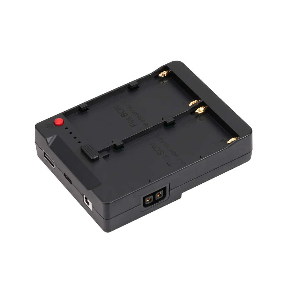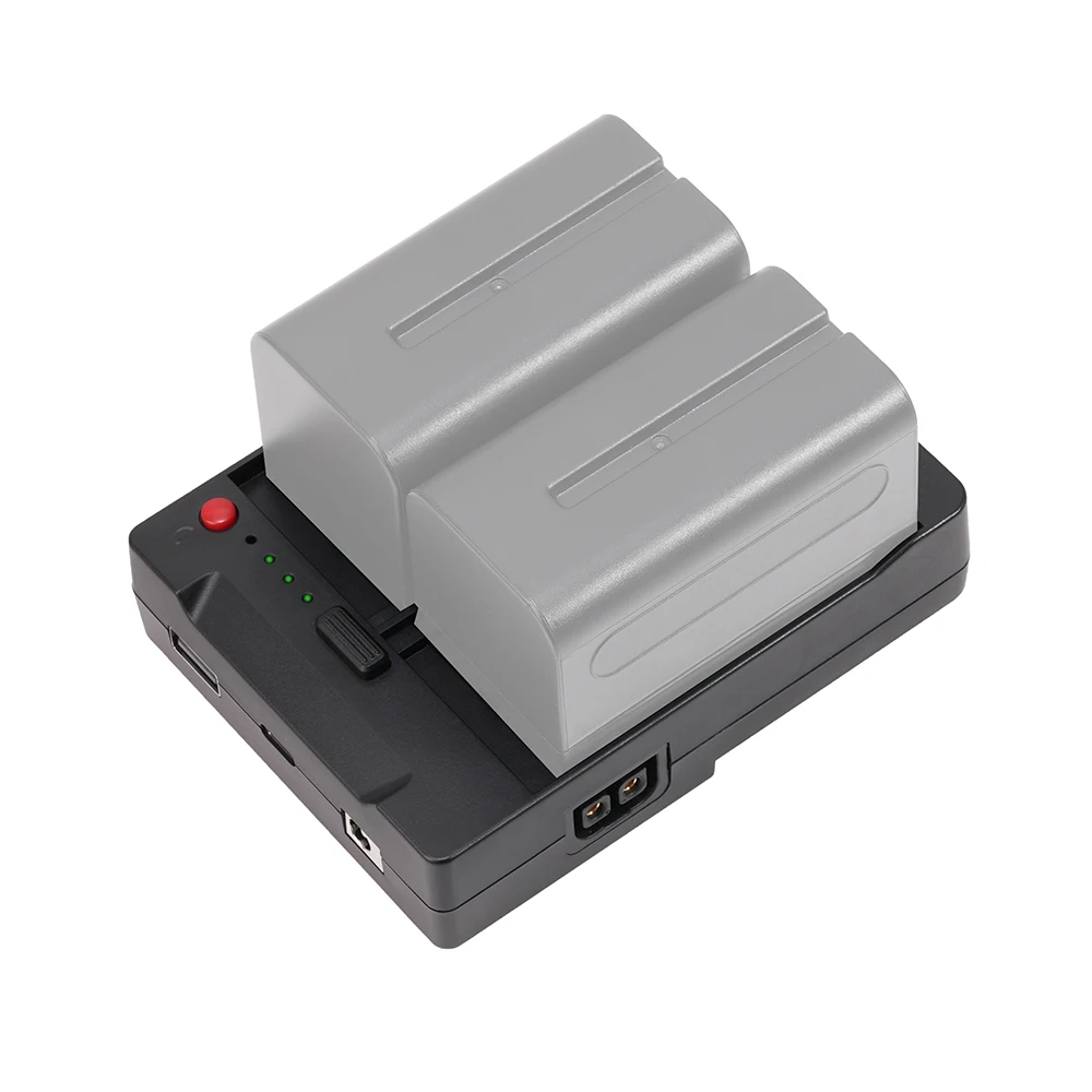 Este producto funciona con baterías de la serie Sony NP-F, que se convierten en pozos de batería con puerto V con múltiples salidas de voltaje e interfaces de salida.Tiene un buen rendimiento de disipación de calor y es un sistema multifuncional eficiente y práctico.