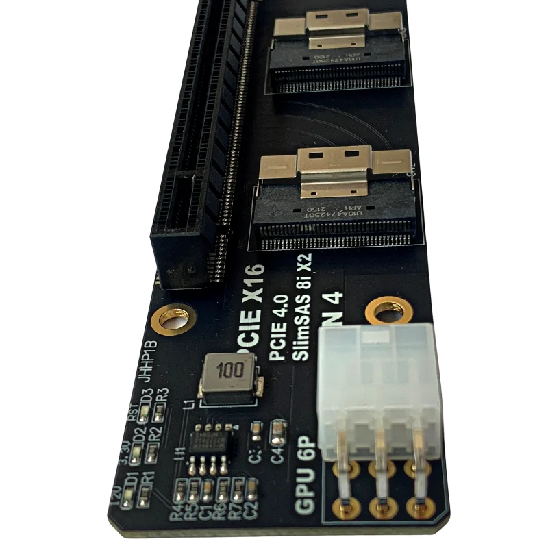 8. Admite SFF8654 de 2 puertos para convertir en un PCIE X16 de ancho de banda completo.