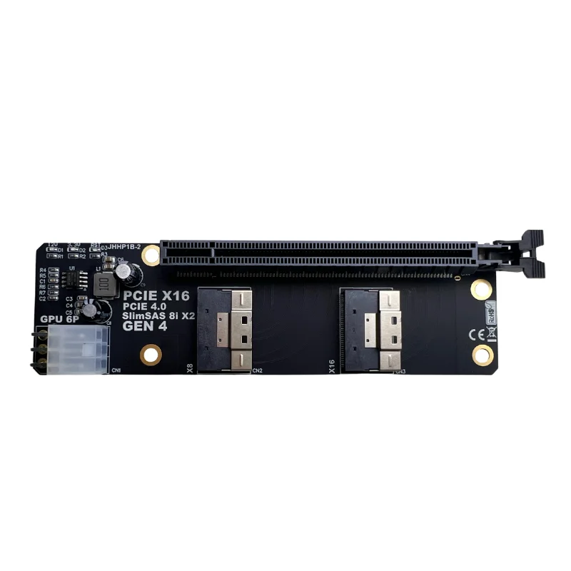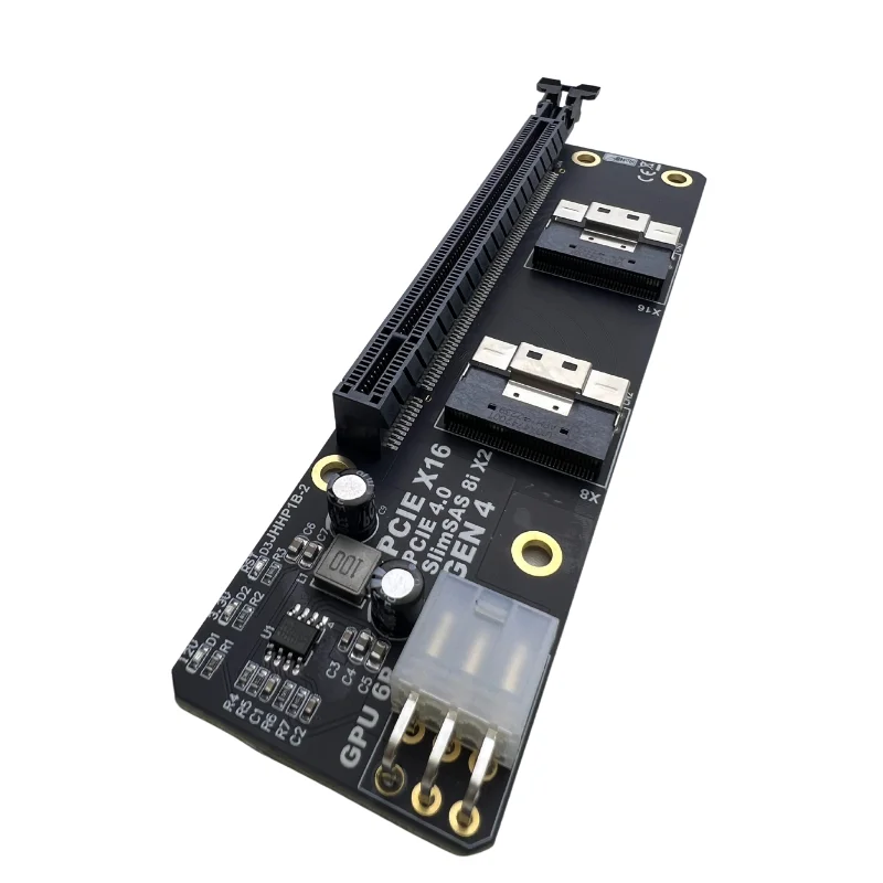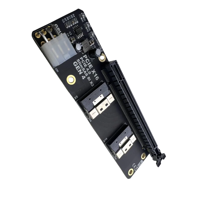 Gen4 2 puertos SlimSAS 8i x2 a PCI-E 4.0 x16 ranura placa adaptadora para tarjeta de red gráficos tarjetas de vídeo tarjeta de captura GPU 6 pines alimentación
