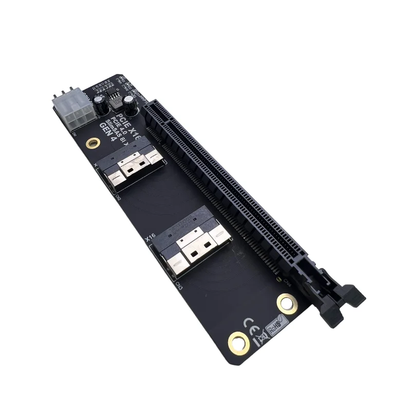 8. Admite SFF8654 de 2 puertos para convertir en un PCIE X16 de ancho de banda completo.
