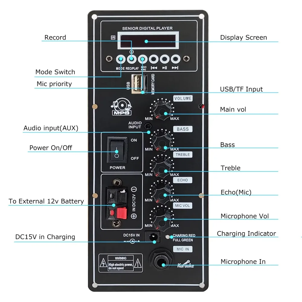 Comprar Placa amplificadora de 12V, altavoz de baile cuadrado, placa amplificadora de 80W, compatible con Bluetooth, AUX, tarjeta TF, grabación en disco U, altavoz de 6-12 pulgadas