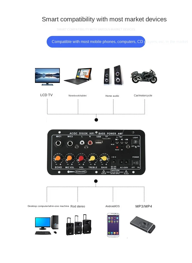 Comprar Placa amplificadora de Audio para cine en casa, Amplificador estéreo, tarjeta SD, reproductor MP3, USB, Bluetooth, HIFI, 18W + 18W