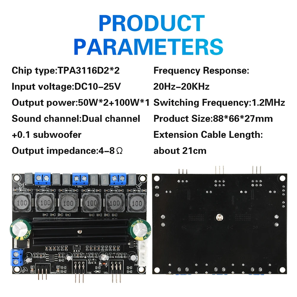 4.Chip de audio de alta fidelidad: equipado con chip amplificador original TPA3116D2, que proporciona salida de calidad de sonido de nivel HIFI, tono delicado y claro.