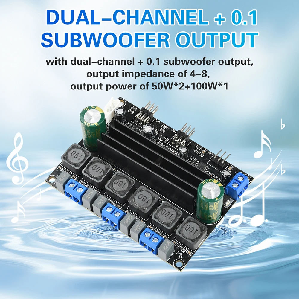 5.Gran potencia de salida: admite salida de subwoofer de doble canal + 0,1, potencia de hasta 50 W × 2 + 100 W, para satisfacer las necesidades de sistemas de audio de alta calidad
