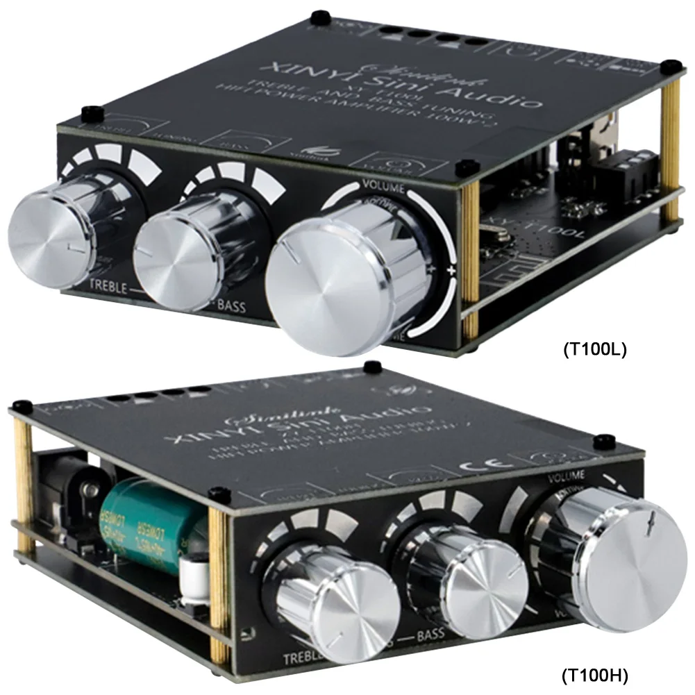 La principal diferencia entre T100H y T100L es la diferencia en el chip. El T100H utiliza el TPA3116D2, mientras que el T100L utiliza el AP3050D. T100H será mejor en términos de calidad de sonido. También hay diferencias en los filtros de salida, así como diferentes tamaños y pesos.