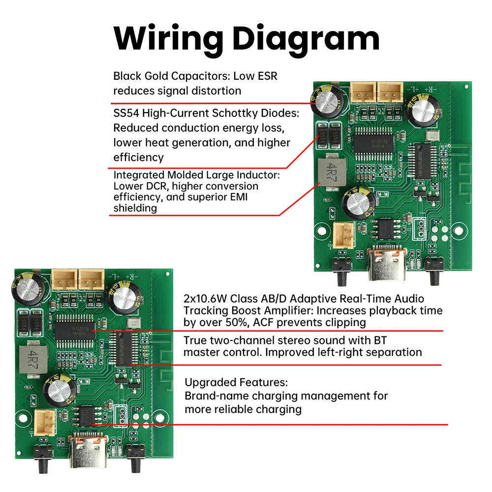 3.La potencia de salida alcanza los 2 * 10 W y el efecto de sonido es mejor cuando se combina con un altavoz de 4 Ω.