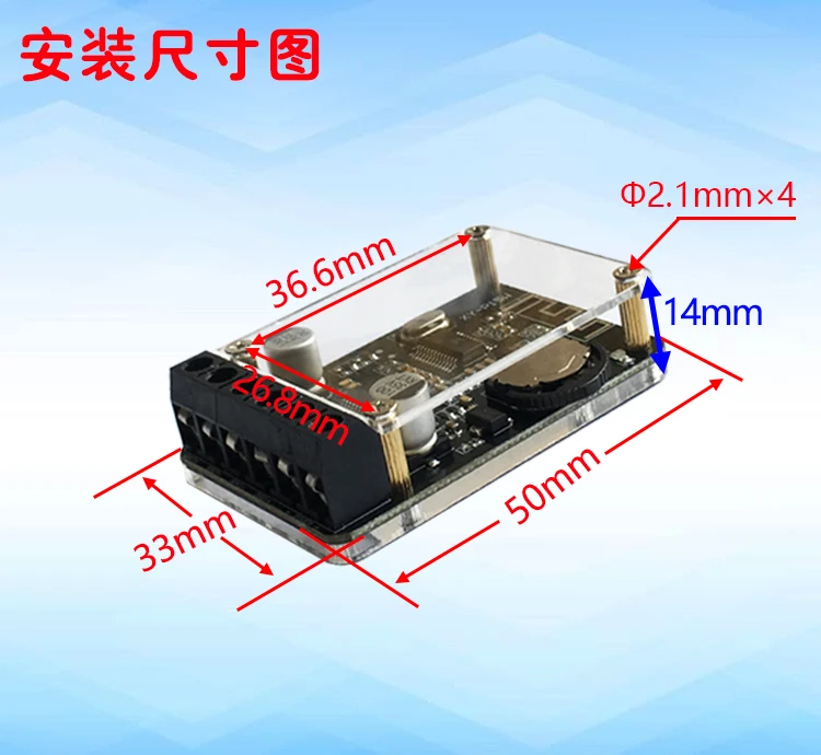 Nota: Para mejorar el rendimiento del módulo, le recomendamos que trabaje más20W * 2Agregue una aleta de enfriamiento al chip amplificador de potencia en el escenario de la aplicación