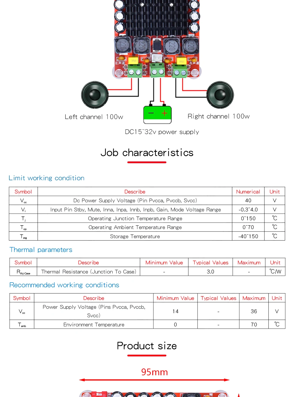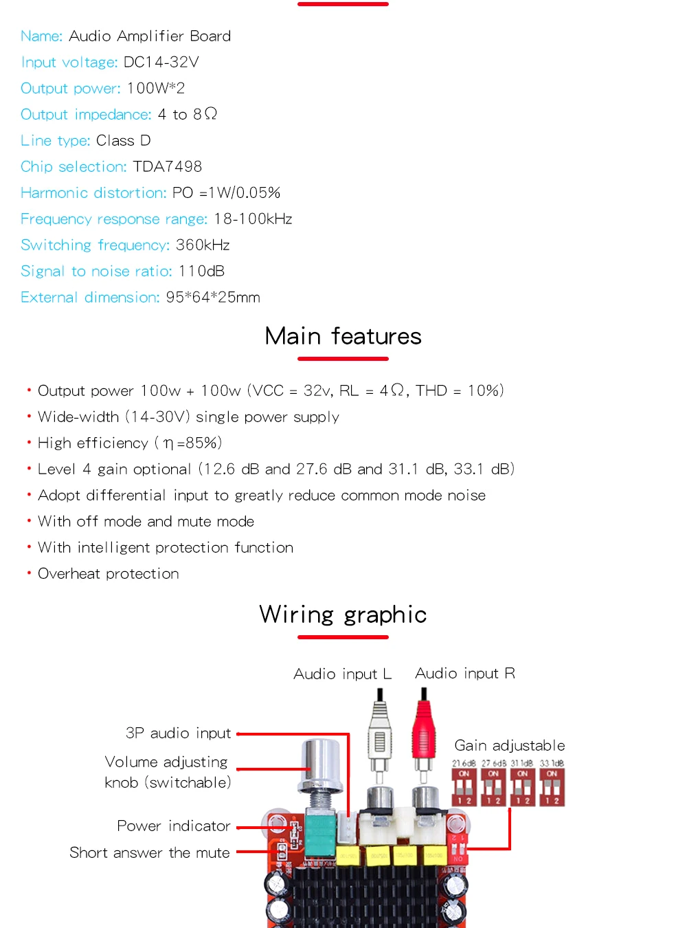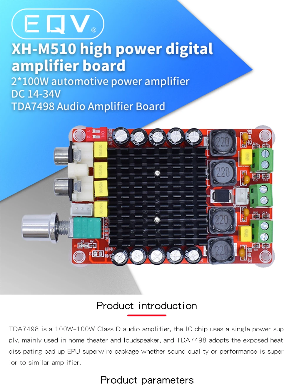 Placa amplificadora de DC14-34V TDA7498, Electrónica inteligente, Clase D, 2x100W, doble canal, Audio estéreo, Xh-M510