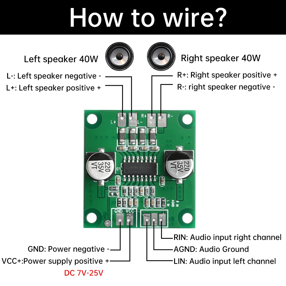 Comprar Placa amplificadora Digital DC 7 ~ 25V, 2 canales, módulo amplificador de Audio estéreo 40Wx2, Mini amplificador de cine en casa
