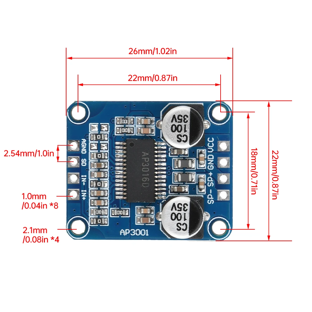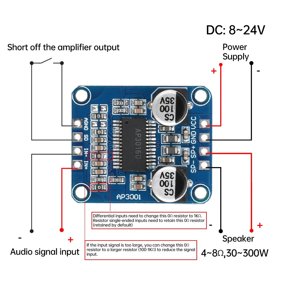 Comprar Placa amplificadora Digital DC8-24V Clase D Audio Mono 10W/20W/30W módulo amplificador de alta potencia AP3001 para altavoz de 4-8ohm 30W-300W