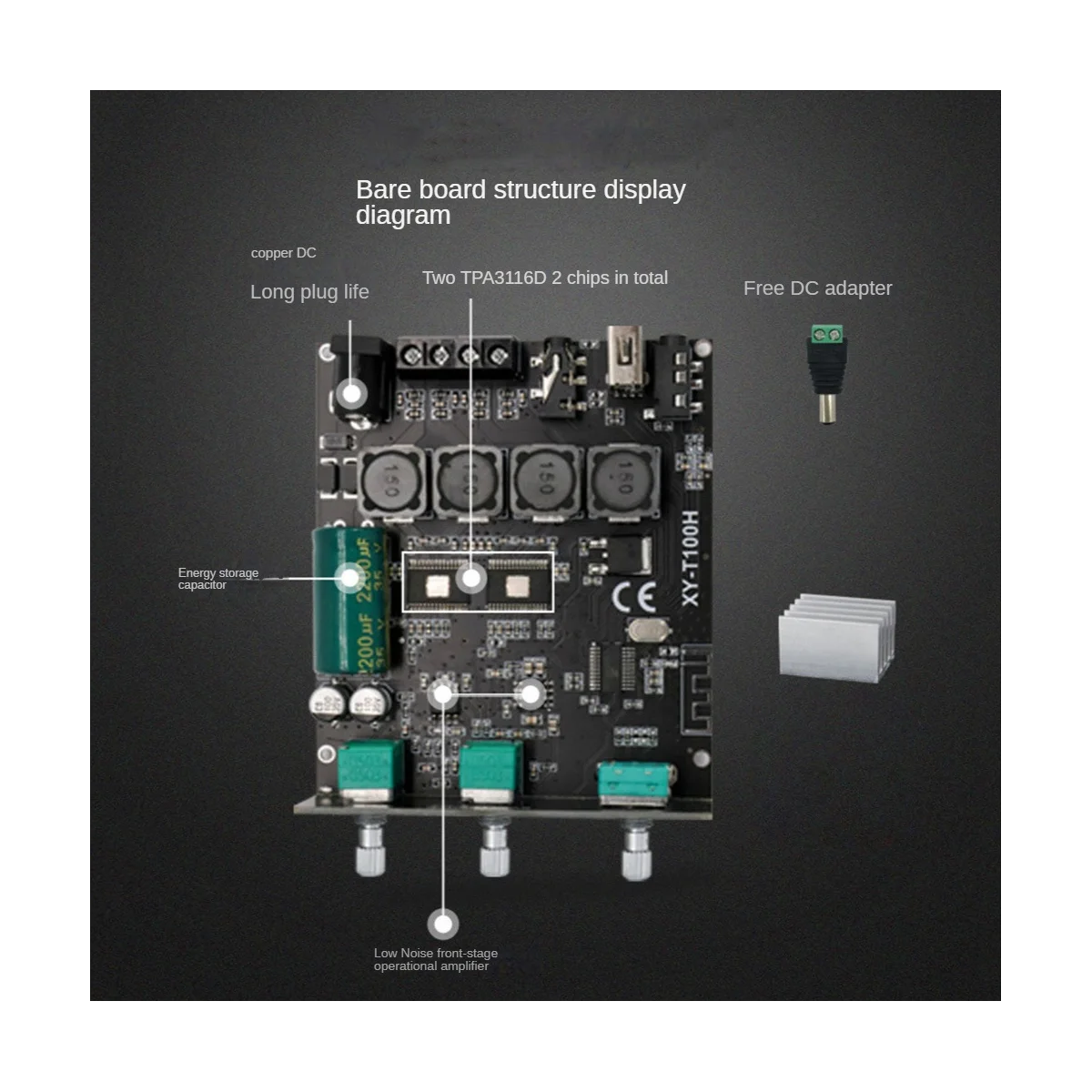Comprar Placa amplificadora Digital XY-T100H TPA3116D2, módulo de Audio estéreo HIFI 100Wx2 con ajuste frontal de graves altos, Bluetooth 5,0