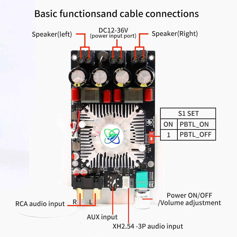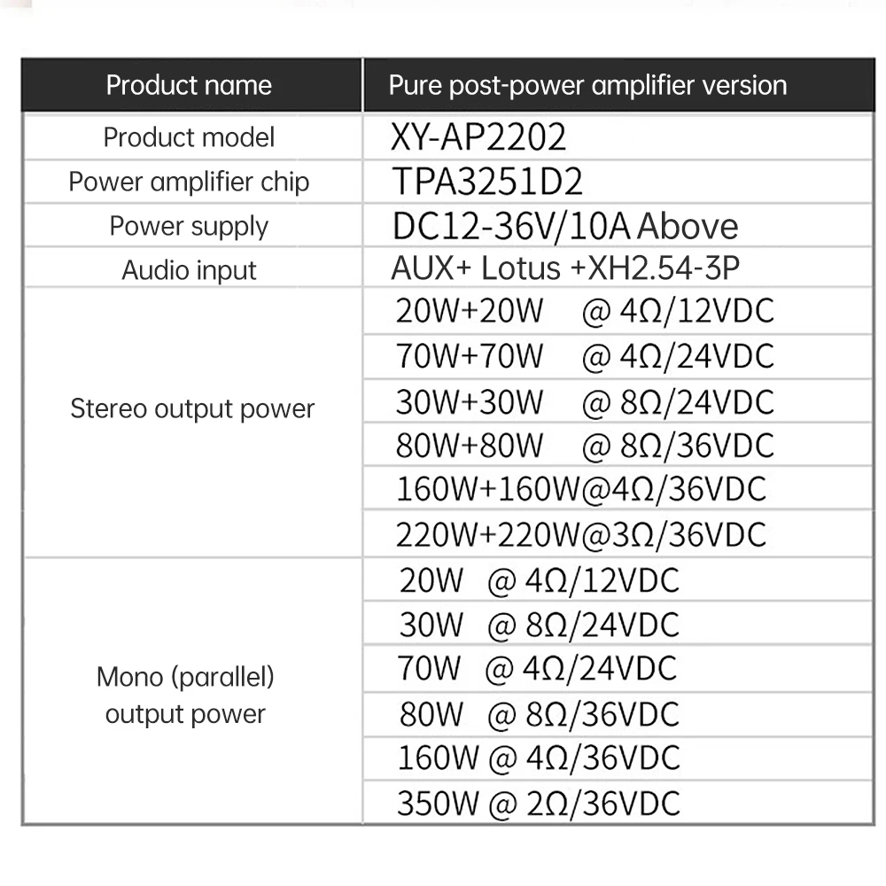 Este producto está diseñado utilizando el chip amplificador de potencia TPA3251D2.TPA3251 es un amplificador de potencia Clase D de alto rendimiento que tiene eficiencia Clase D y puede ofrecer una calidad de sonido verdaderamente de alta gama. Este dispositivo presenta un diseño de retroalimentación integrado avanzado y una función patentada de corrección de errores del controlador de puerta de alta velocidad (PurePath "HD).Esta tecnología permite que los dispositivos mantengan una distorsión ultrabaja en toda la banda de frecuencia de audio mientras muestran una calidad de sonido de alta definición.