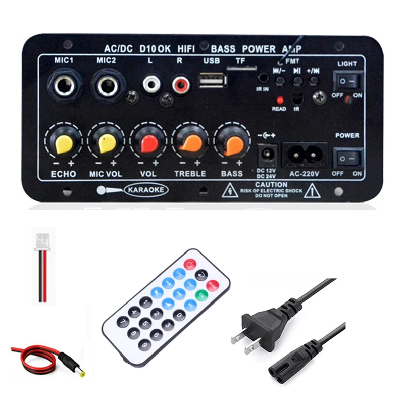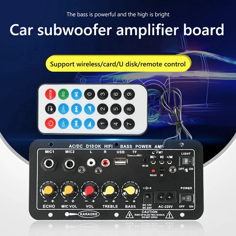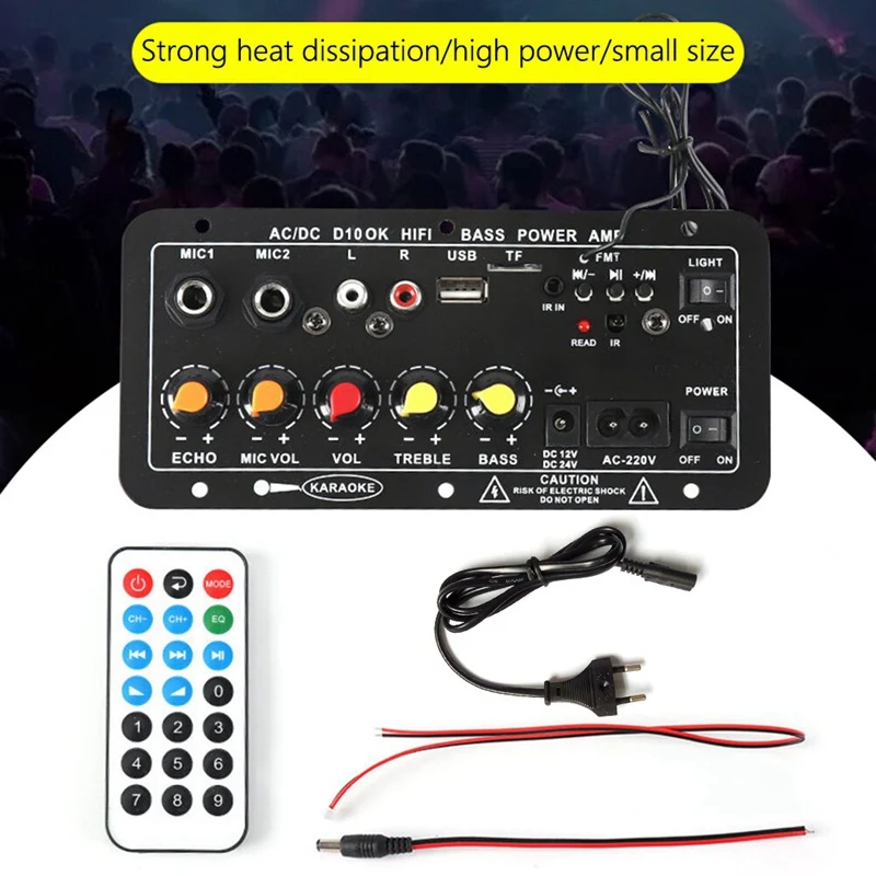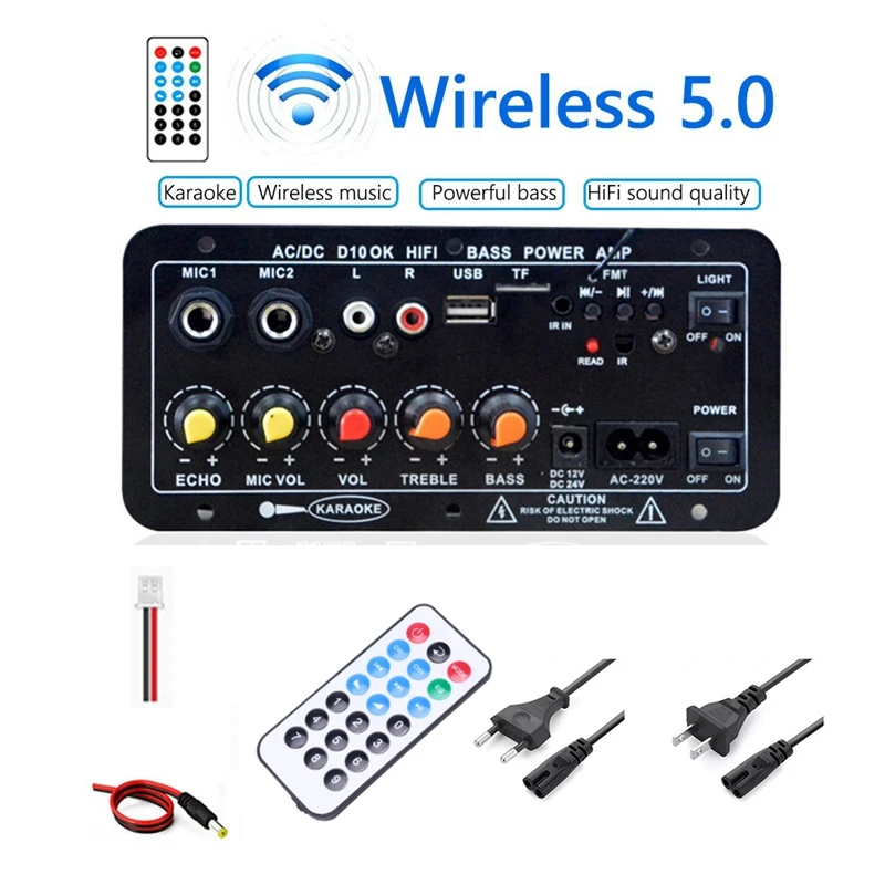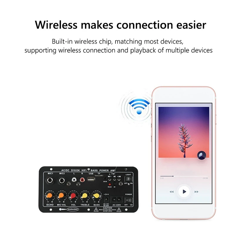 5. Amplificador de potencia digital, potencia máxima de 400W, puede conducir altavoces magnéticos de 4ohm 100; 6 micrófonos de reverberación ajustables de doble entrada; Receptor inalámbrico integrado con Bluetooth y Radio FM