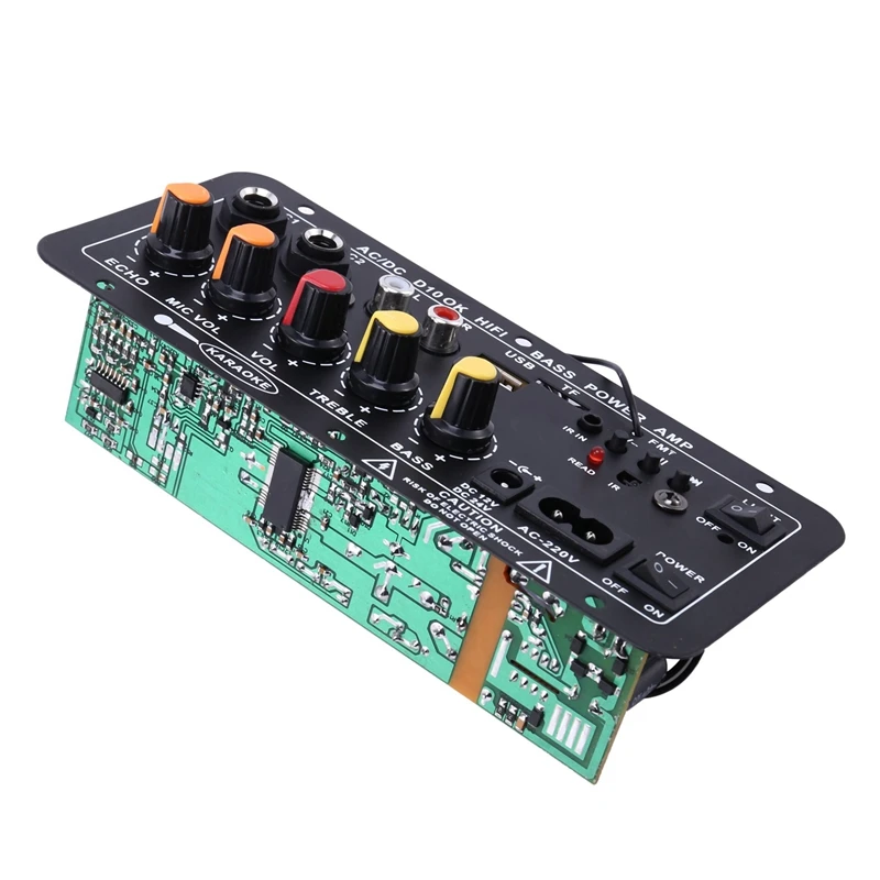 5. Amplificador de potencia digital, potencia máxima de 400W, puede conducir altavoces magnéticos de 4ohm 100; 6 micrófonos de reverberación ajustables de doble entrada; Receptor inalámbrico integrado con Bluetooth y Radio FM