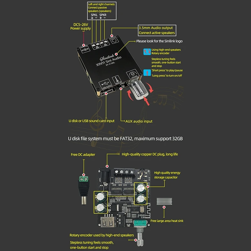 Comprar Placa amplificadora estéreo Digital de alta potencia, Amplificador de cine en casa, HIFI, 100WX2, Bluetooth 5,0, AUX, USB, XY-C100L