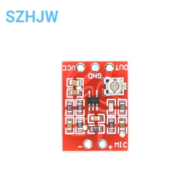 La placa amplificadora de micrófono electret adopta el chip amplificador electret MXA4466 importado original, y la ganancia se puede ajustar mediante la resistencia ajustable en la placa.