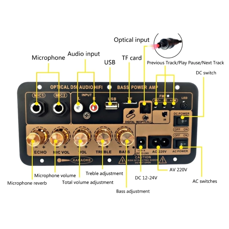 Entrada de micrófono doble, compatible con Bluetooth incorporado y radio.