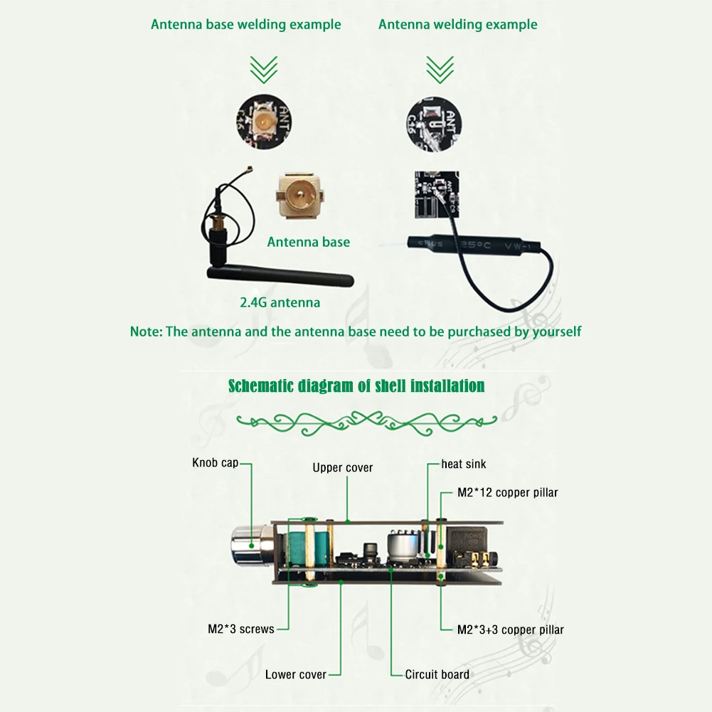 Modo de entrada de audio compatible con AUX y Bluetooth, placa amplificadora de potencia dos en uno. Compatible con Bluetooth 5,0, la eficiencia de transmisión es mayor, la distancia de transmisión es mayor