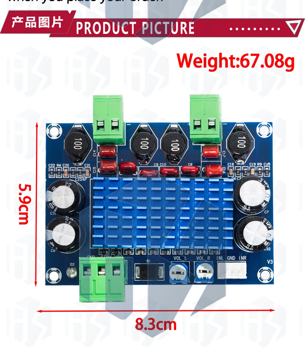 Placa amplificadora de potencia HIFI Digital de alta potencia BS XH M572 TPA3116D2-2 * 120W, enchufe de chasis dedicado, entrada de 5V/24V/28V, salida de 120W