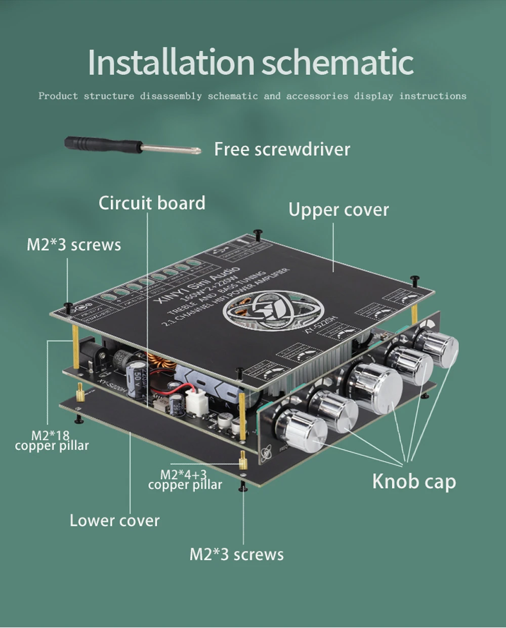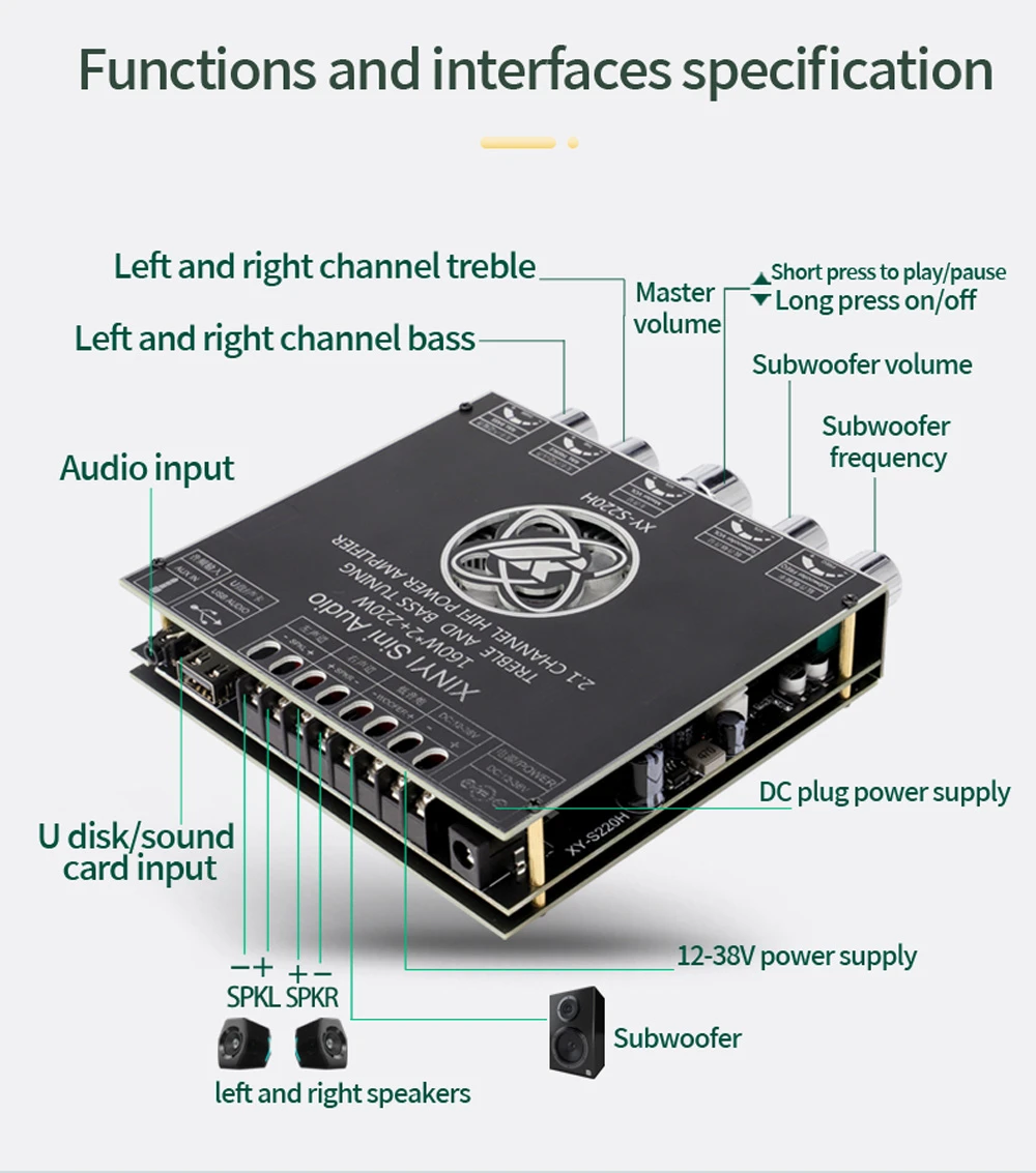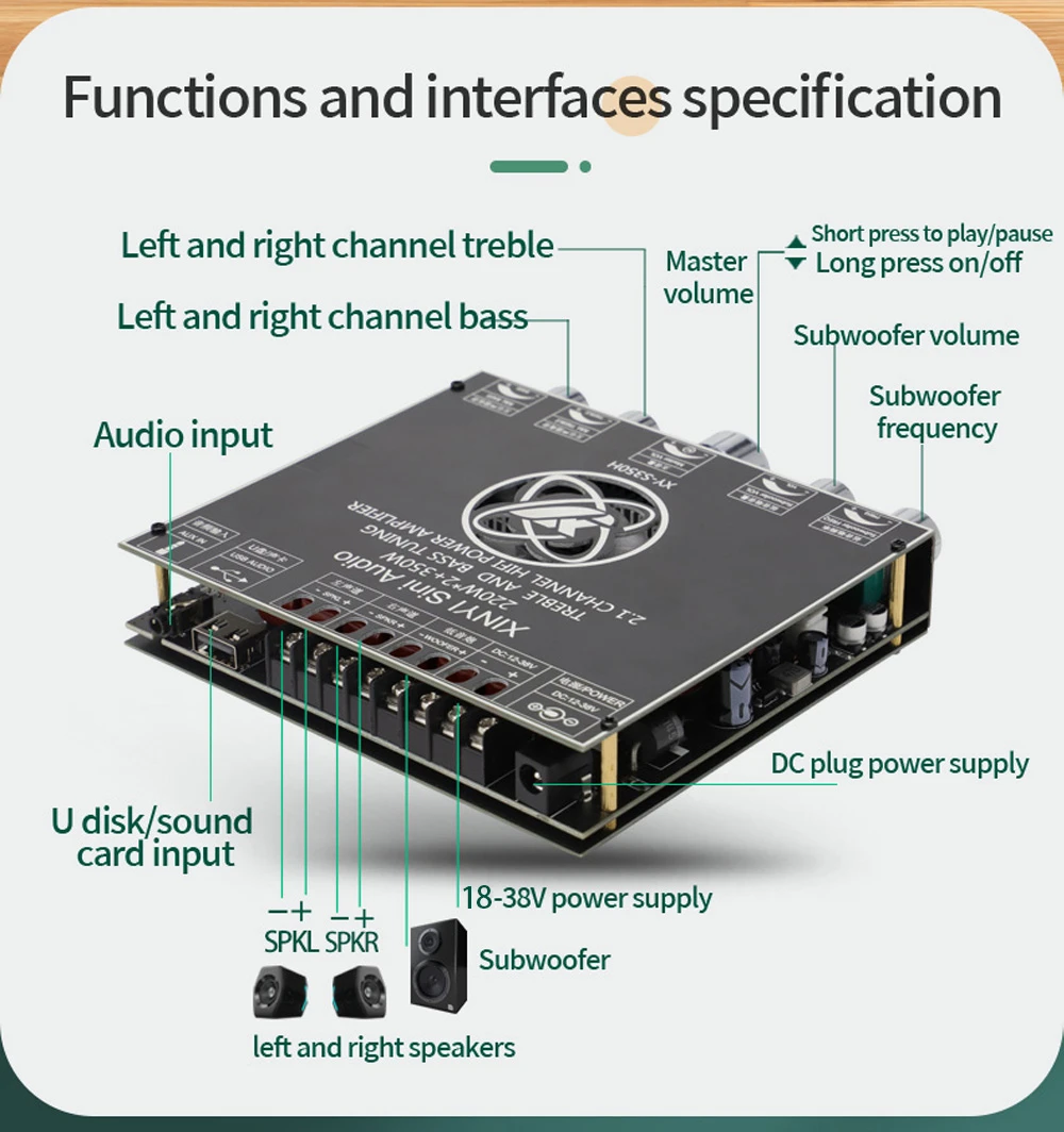 Comprar Placa amplificadora de potencia TPA3251, amplificador de potencia de 220W x 2 + 350W, con Bluetooth, 2,1 canales, Clase D, tarjeta de sonido USB, MP3, Subwoofer, ecualizador de Audio estéreo