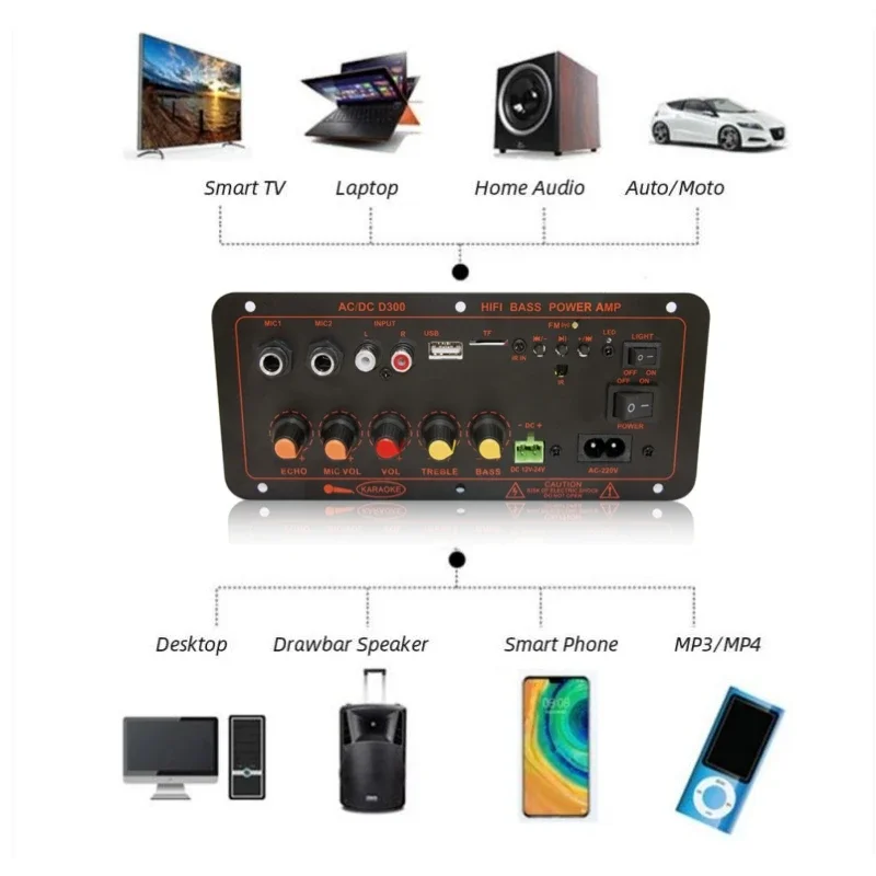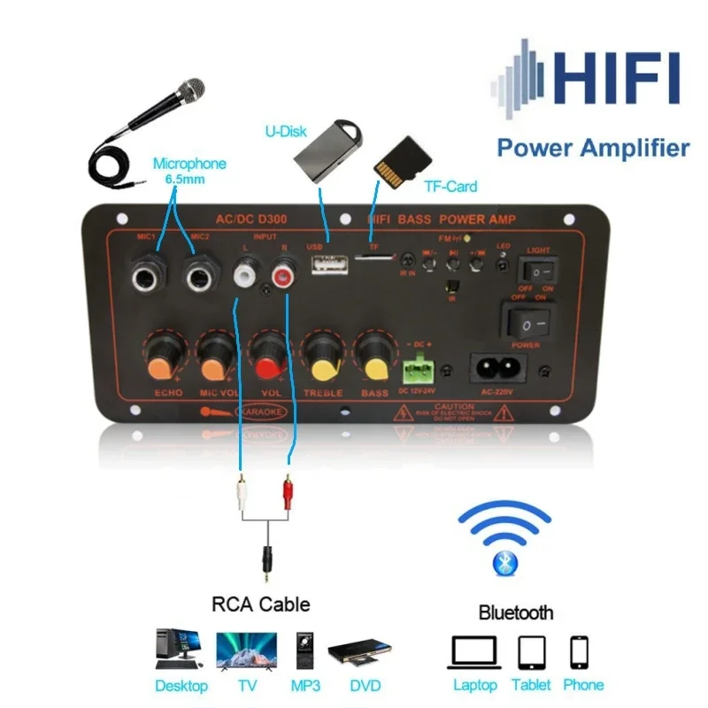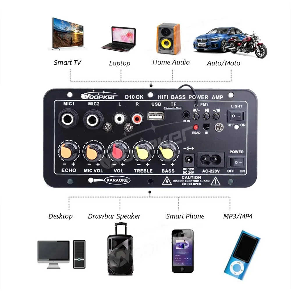 Comprar Placa amplificadora de potencia Woopker D300, placa de amplificación de Audio 600W, Bluetooth 5,0, micrófonos duales, compatible con Radio USB/TF/AUX/FM