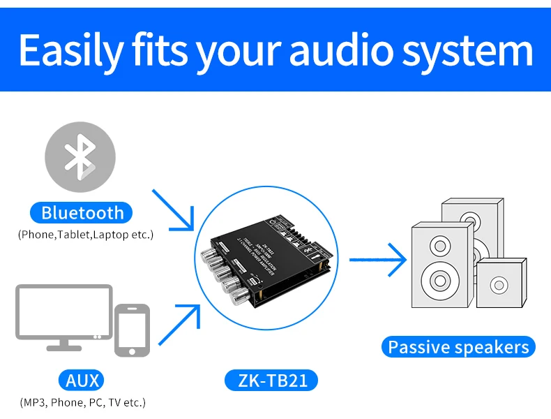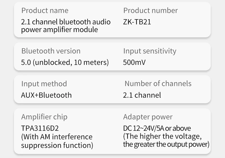 Nombre del producto: Módulo amplificador de audio compatible con Bluetooth de 2,1 canales