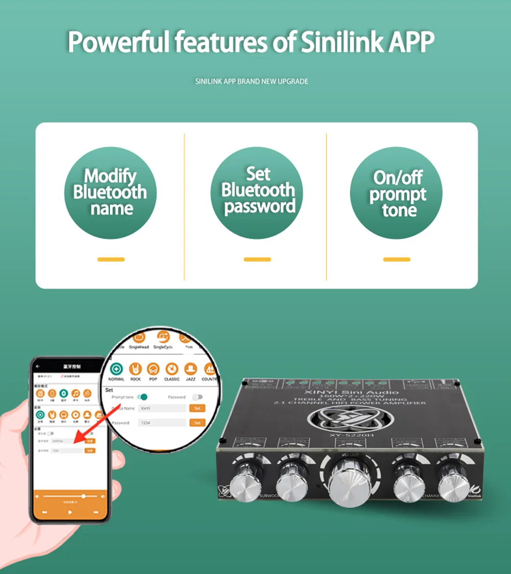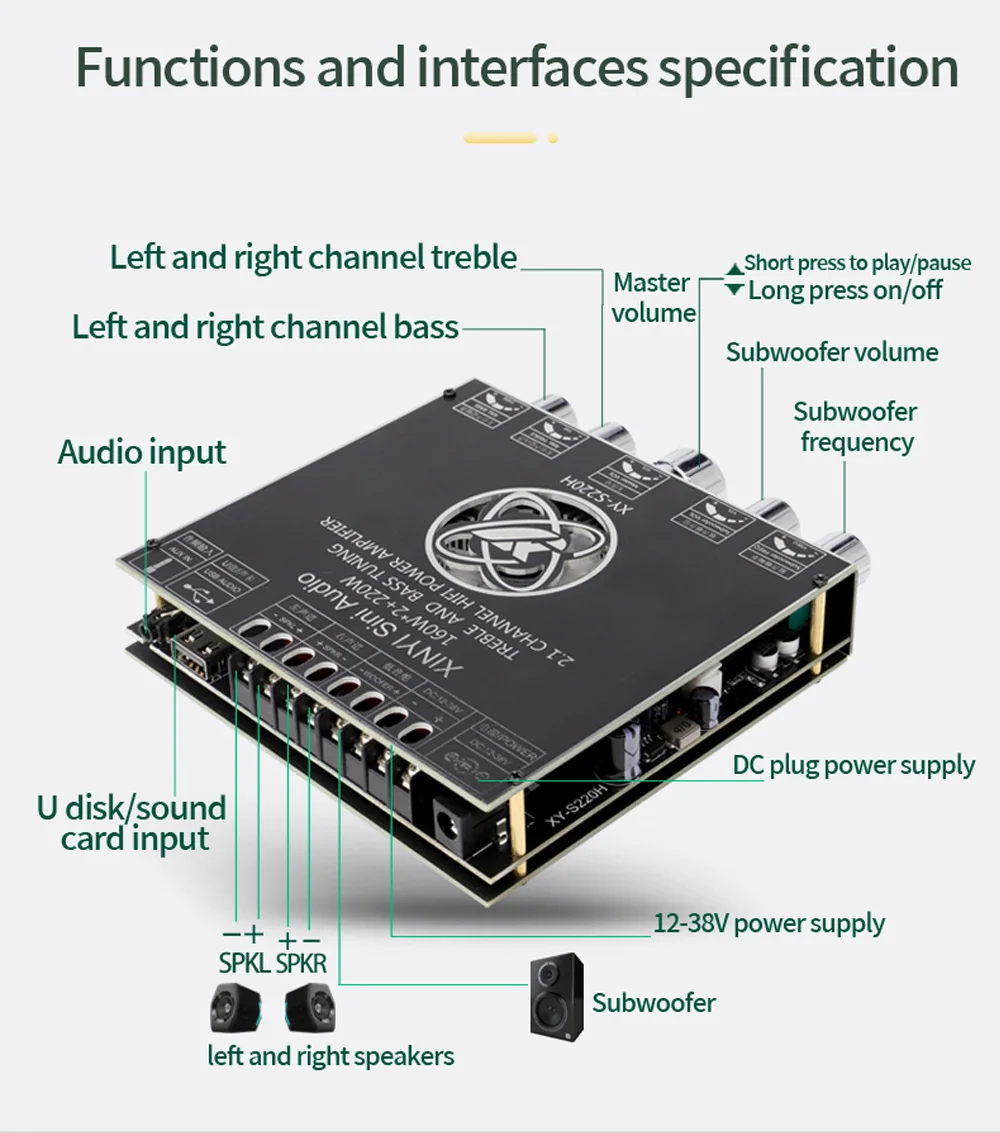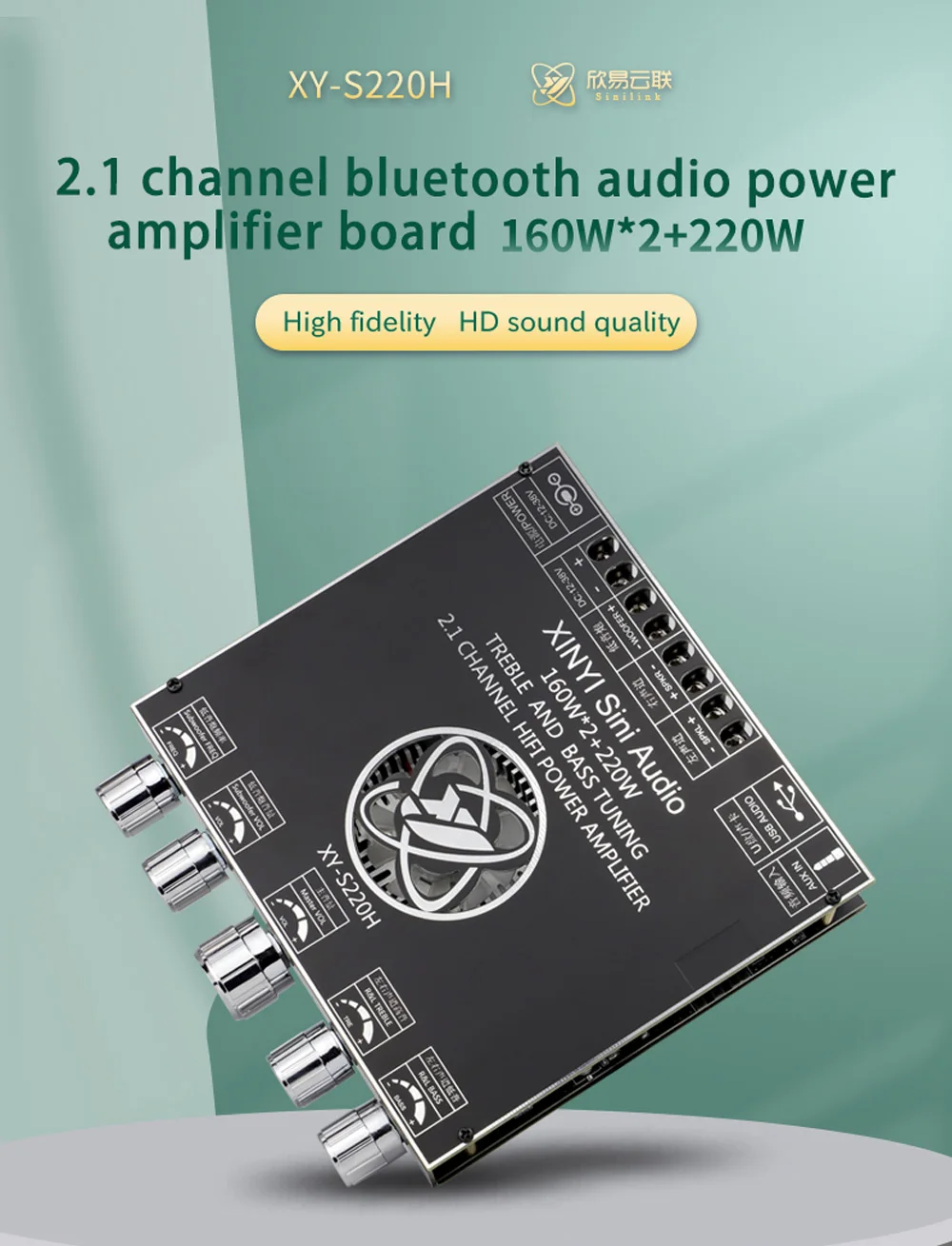 Placa amplificadora XY-S220H App Control 160Wx2 + 220W TDA7498E 2,1, doble canal, Compatible con Bluetooth 5,1 + AUX + tarjeta de sonido USB + Flas USB