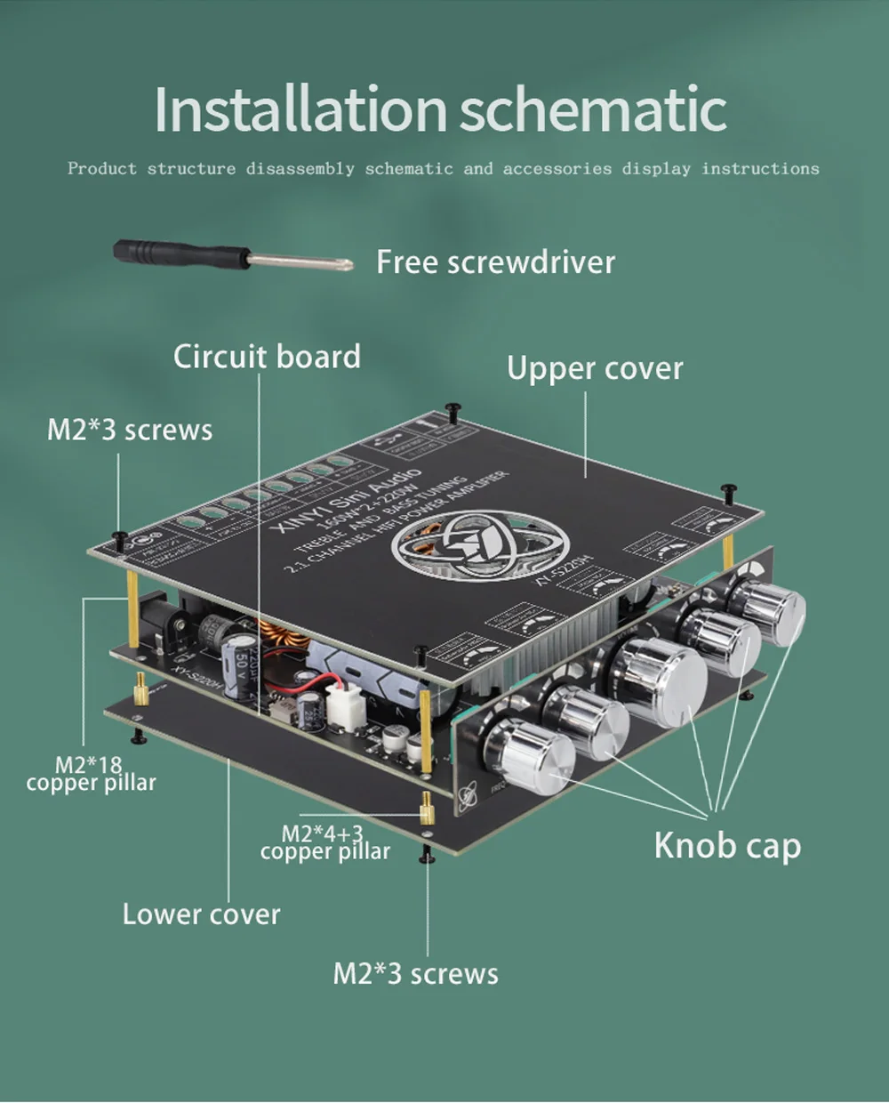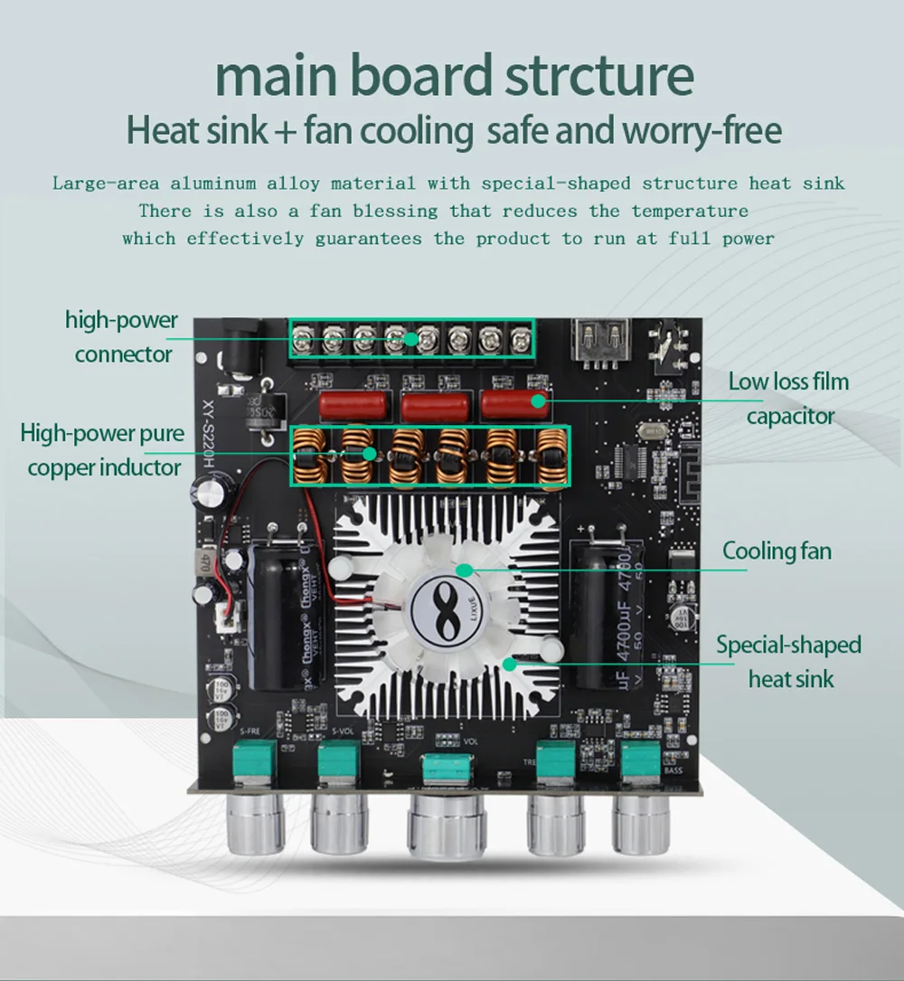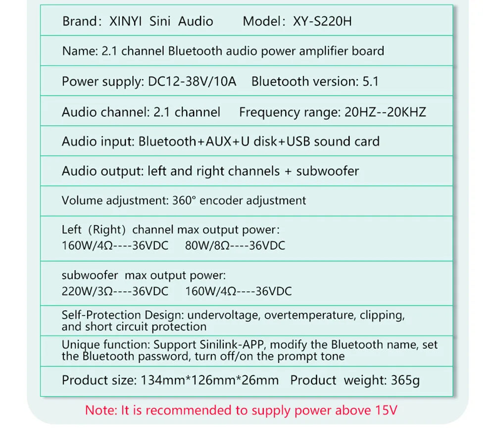 Placa amplificadora XY-S220H App Control 160Wx2 + 220W TDA7498E 2,1, doble canal, Compatible con Bluetooth 5,1 + AUX + tarjeta de sonido USB + Flas USB