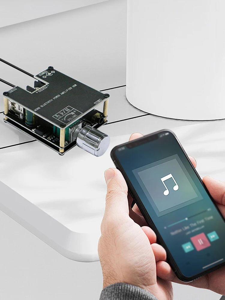 2.Emparejamiento estéreo inalámbrico TWS:La placa de amplificador de audio admite el emparejamiento True Wireless Stereo (TWS), transformándose instantáneamente en un sistema de sonido estéreo de canal izquierdo y derecho para una experiencia de audio inmersiva.