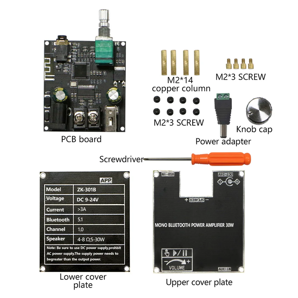 5.Amplio rango de aplicaciones:El módulo amplificador de potencia de audio mono es adecuado para altavoces de 4 a 8 ohmios y 5-30 W, y ofrece una amplia compatibilidad para diversos proyectos de audio y configuraciones de altavoces.