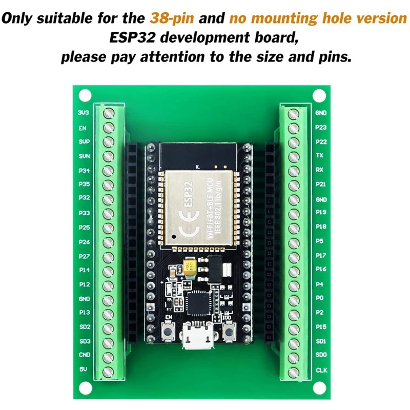 COMPATIBILIDAD (IMPORTANTE): Solo apto para versión estrecha ESP32 de 38 pines sin agujeros de montaje, no apto para otras versiones. GPIO 1 EN 2: Esta placa de conexión puede ampliar un PIN GPIO DE LA PLACA DE DESARROLLO esp32 a dos, lo cual es conveniente para que los usuarios reutilicen todos los pines en proyectos de hogar inteligente. Buena alternativa a la placa de pruebas. 2 TIPO DE CONEXIONES: Cabezal de clavija y terminal de tornillo. Simplemente selecciónelos de acuerdo con su propósito. PCB DE DOBLE CAPA: la placa de expansión es una placa de doble capa. Un pin está cableado en ambos lados. Por lo tanto, el circuito es estable y altamente confiable, y no habrá contacto de circuito deficiente ni transmisión de señal inestable. La Placa de esta versión ha sido soldada completamente. No es necesario soldar las piezas usted mismo, ya que es muy conveniente de usar.