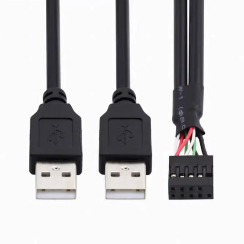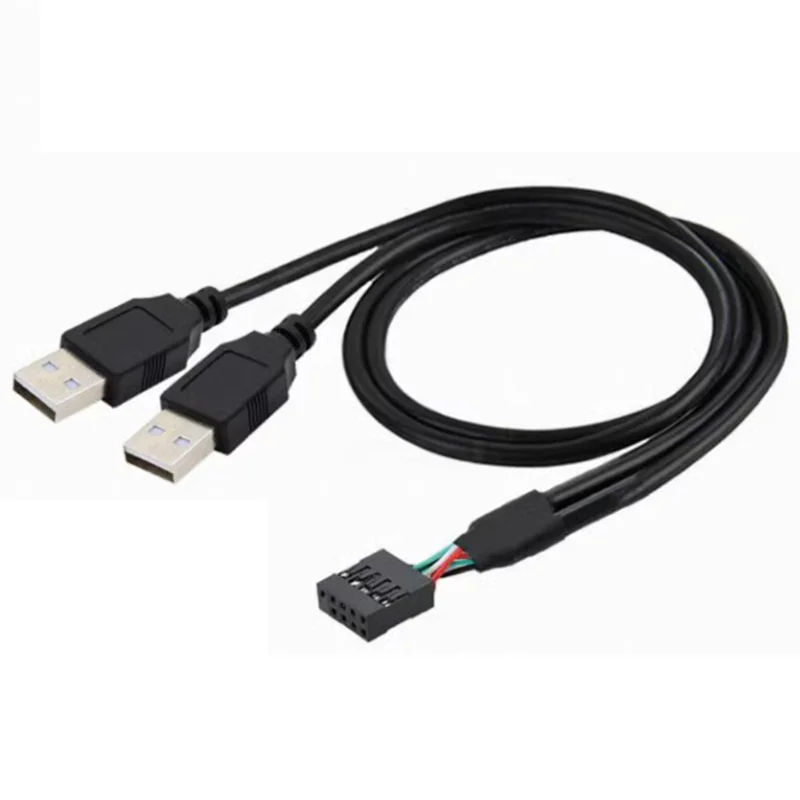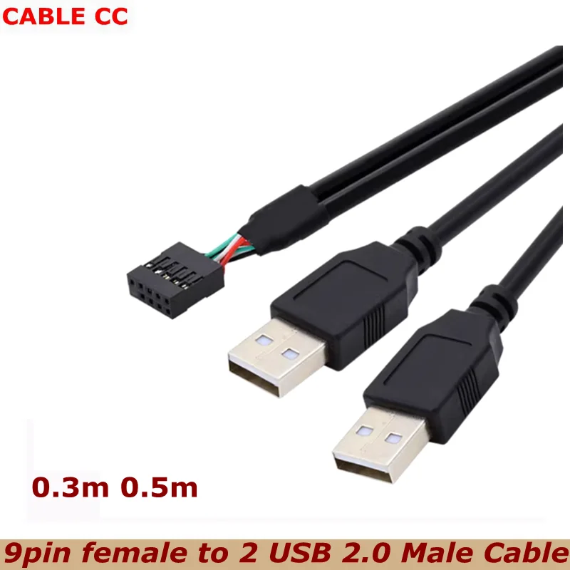 Comprar Placa base de 10 pines/9 pines, cabezal hembra a USB Dual 2,0, Cable de datos de montaje en Panel macho con orificios para Panel de tornillo, 30CM, 50CM