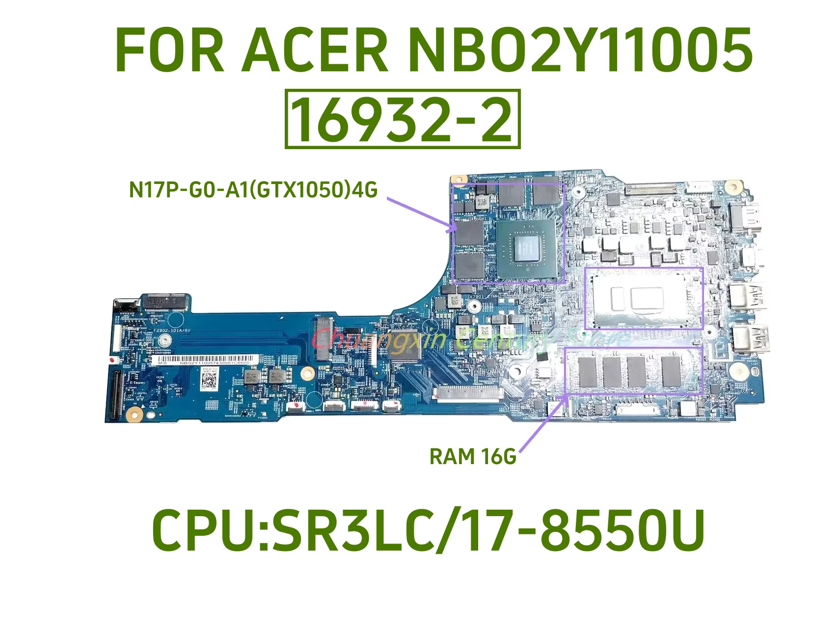 Comprar Placa base 16932-2 para portátil Acer FRU: NBQ2Y11005 con I7-8550U CPU GTX1050 4G GPU 16G RAM 100% prueba ok envío