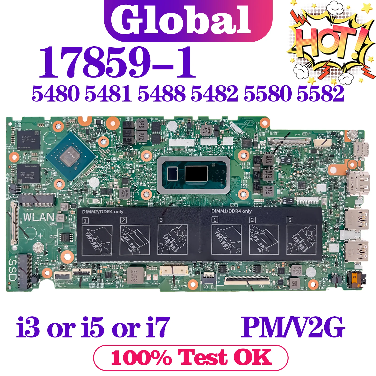 Comprar Placa base 17859-1 5480 5488 5580 5582 5481 5482 para placa base de ordenador portátil Dell Inspiron i3 i5 i7 8th Gen V2G
