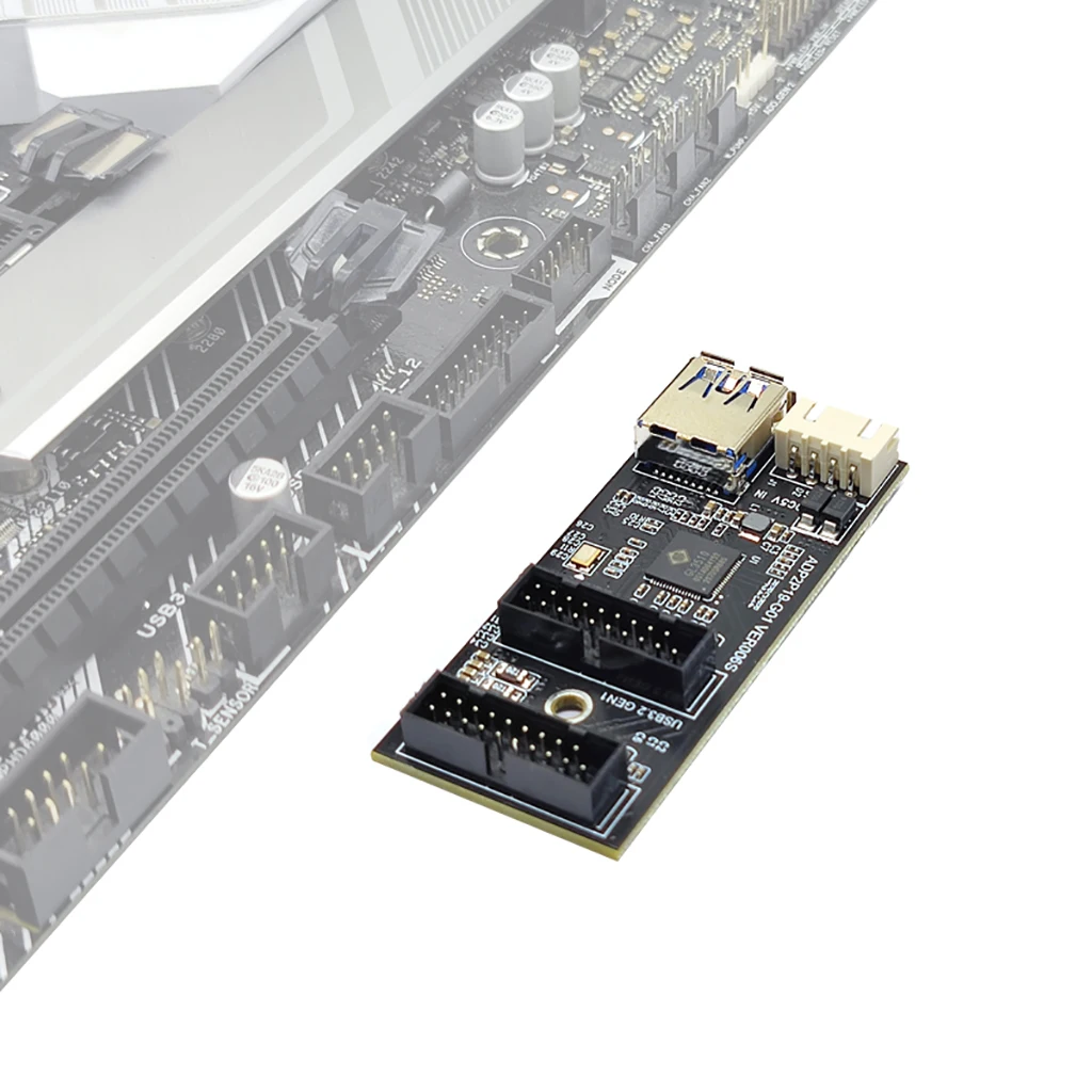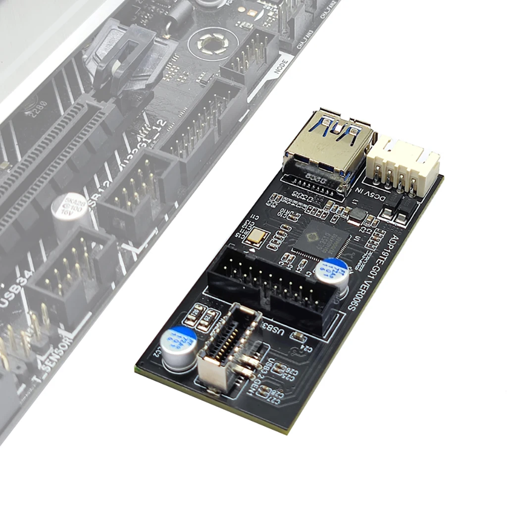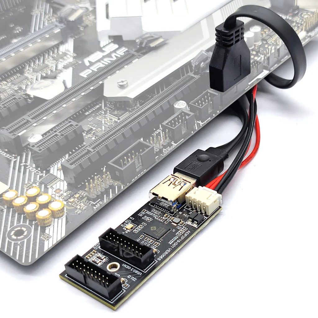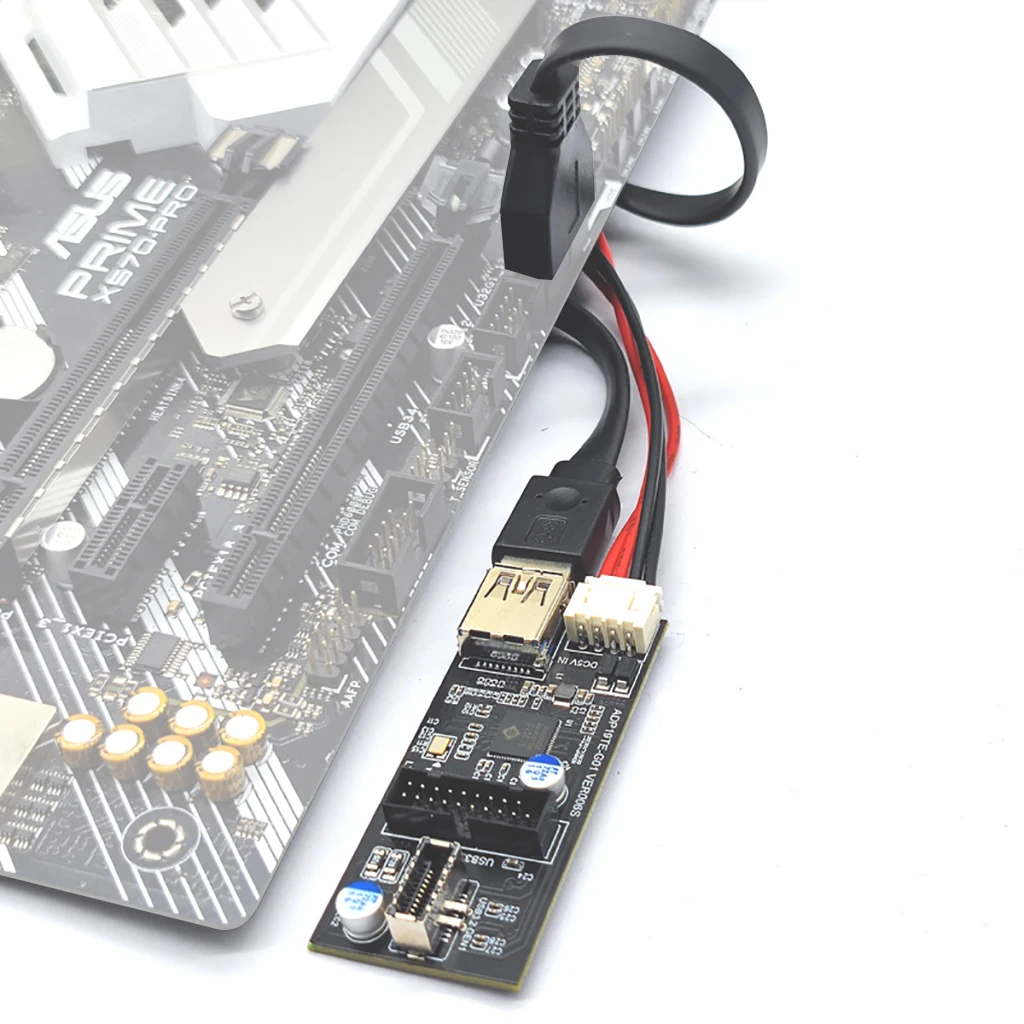 Placa base de 19 pines a tipo E + 19 pines, divisor de 1 a 2 USB 3,2 GEN 1, adaptador de concentrador, Conector A-KEY, tarjeta de extensión de 19 pines a doble 19P