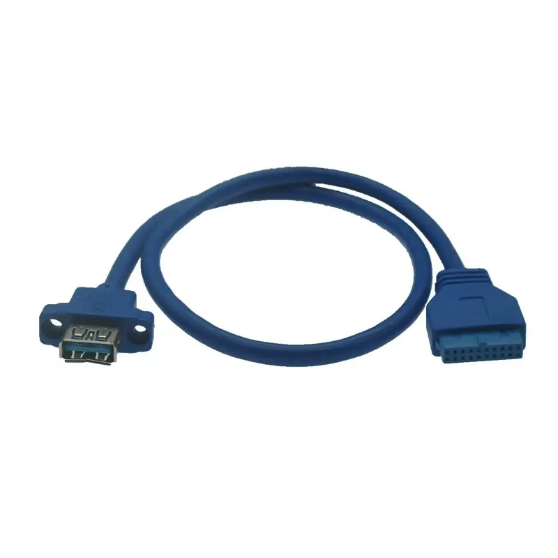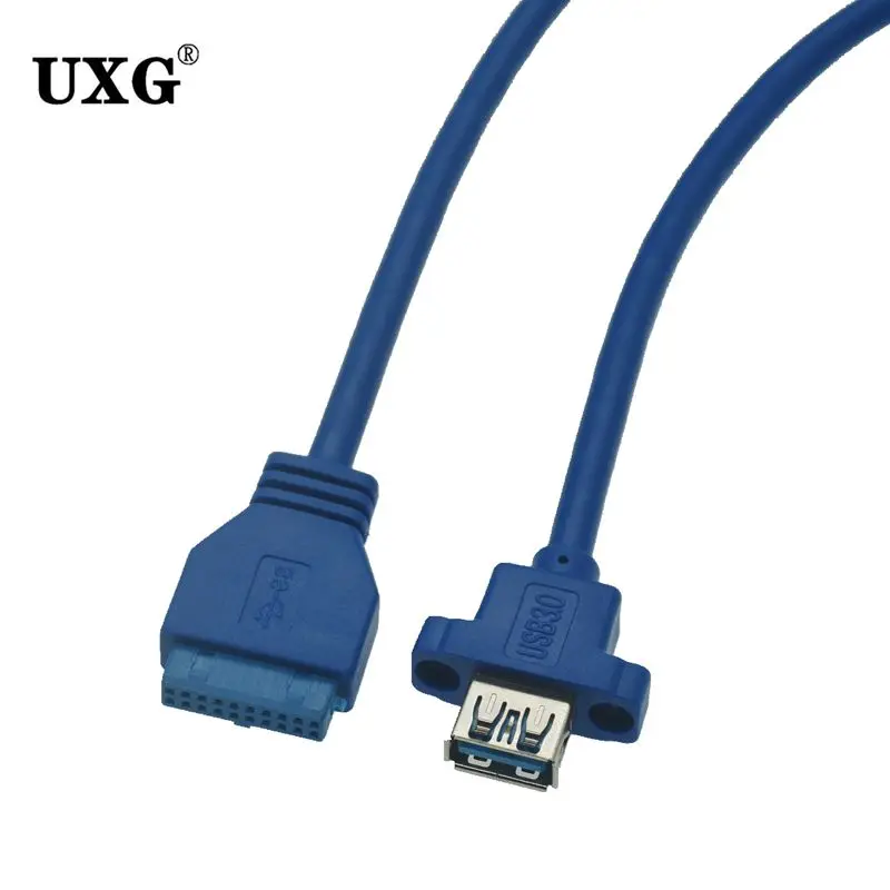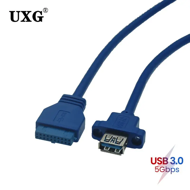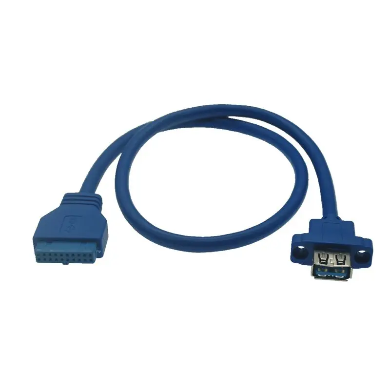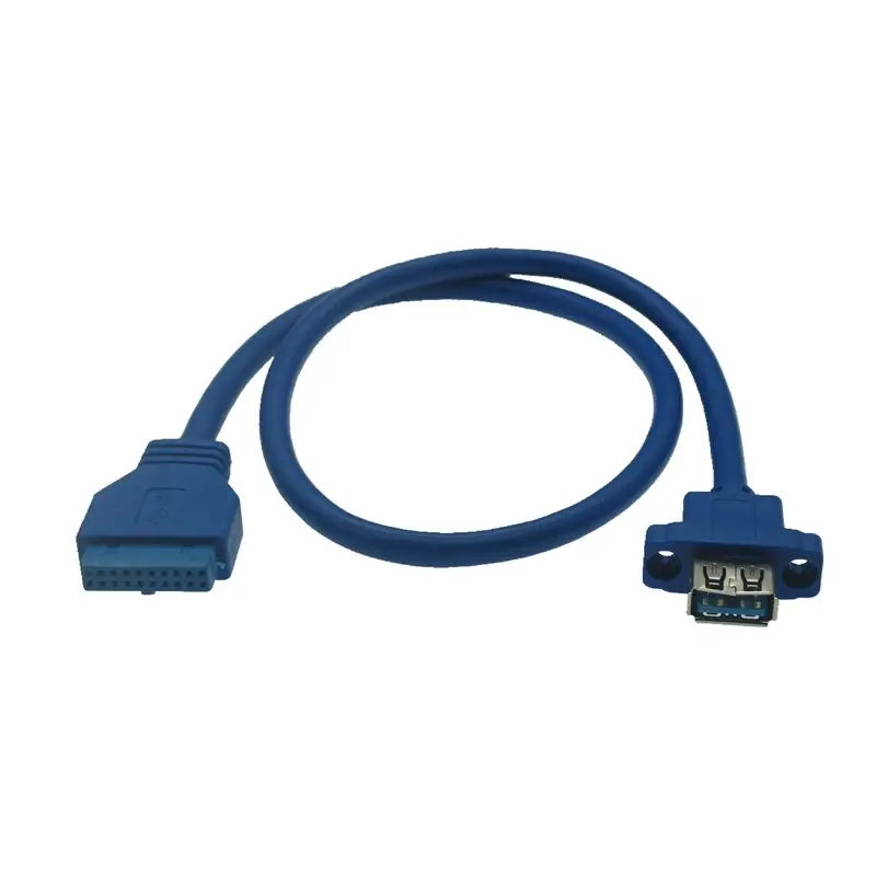 Comprar Placa base 20Pin / 19pin a USB 3,0 Cable de datos hembra con tornillo de montaje en Panel de aluminio + trenzado blindado 50cm 75cm