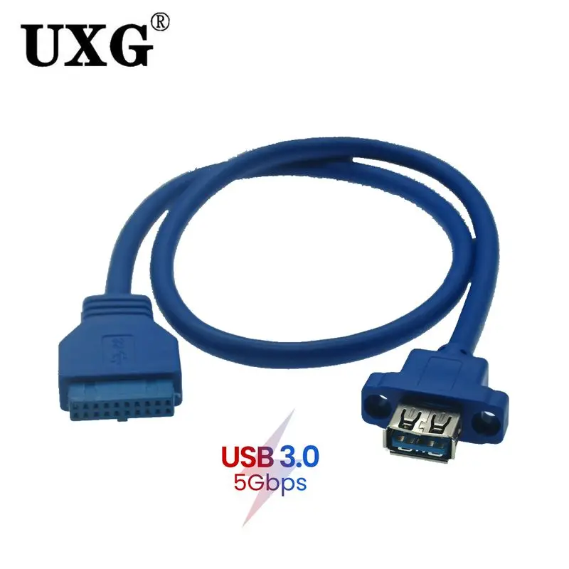 Comprar Placa base 20Pin / 19pin a USB 3,0 Cable de datos hembra con tornillo de montaje en Panel de aluminio + trenzado blindado 50cm 75cm