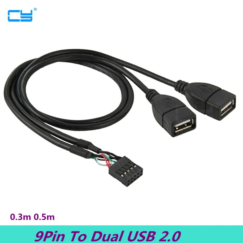 Comprar Placa base de 9 pines a doble USB 2,0 Cable de extensión hembra Cable adaptador de placa base 0,3 M 0,5 M