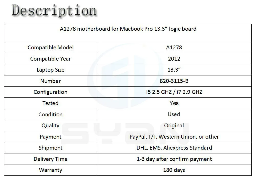 Comprar Placa base A1278 para Macbook Pro 13,3 "i5 2,5 GHZ, 820-3115-B 2012