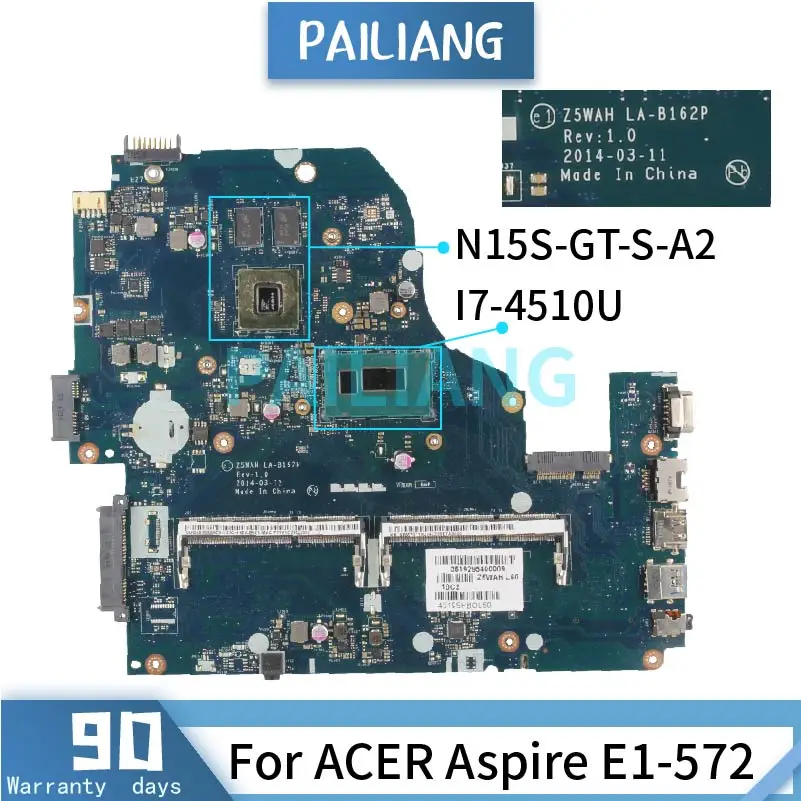 Comprar Placa base para ACER Aspire E1-572, placa base para ordenador portátil, I7-4510U, LA-B162P, SR1EBTested, OK