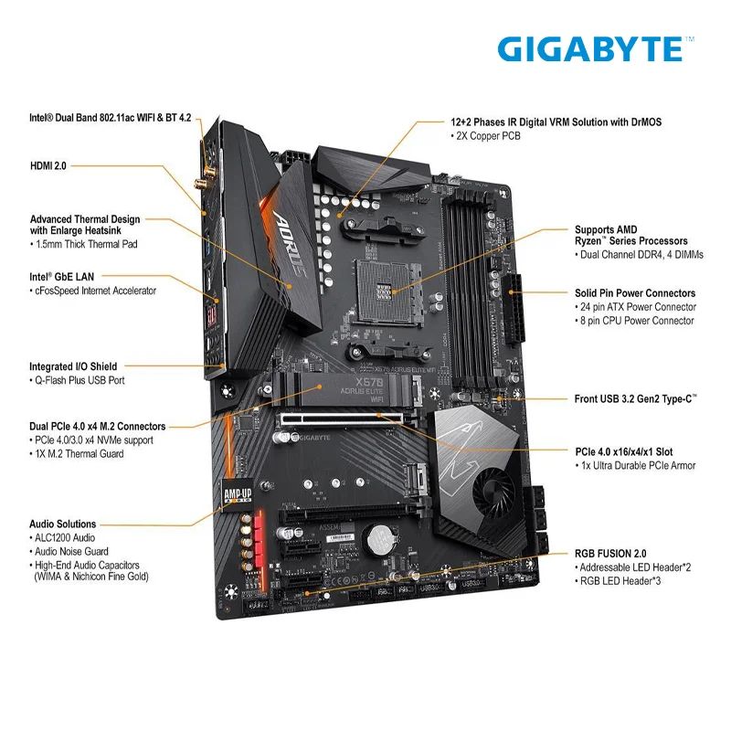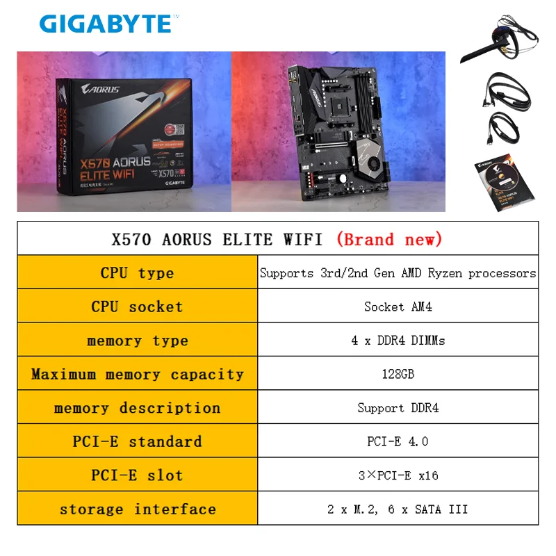 Comprar Placa base AM4 Gigabyte X570 AORUS ELITE para juegos, WIFI, AM4, compatible con AMD Ryzen CPU, AMD X570, DDR4, 128GB, X570, AMD, nuevo
