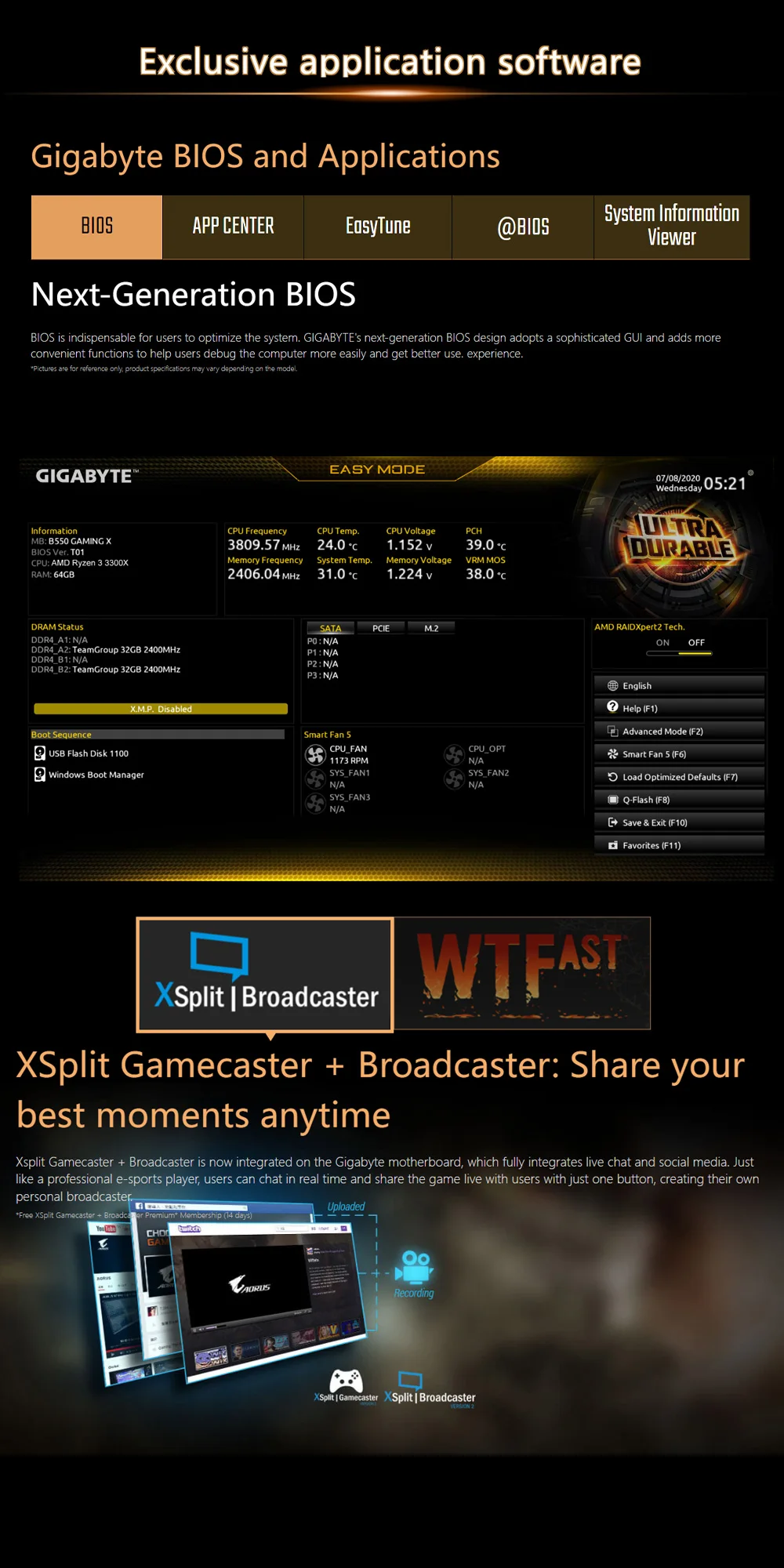 Placa base AMD B550 con diseño de fuente de alimentación digital, ranura para tarjeta gráfica PCI-E 4,0, ranura NVMe M.2 SSD, tarjeta de red de alta velocidad para juegos de Gigabyte Gigabit, ventilador inteligente 5 + DISEÑO DE VENTILADOR inteligente,. RGB FUSION 2,0, q-flash Plus