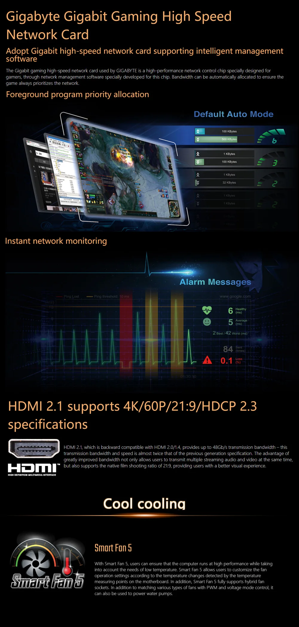 Tarjeta de red de alta velocidad para juegos Gigabit Gigabyte equipada con software de gestión inteligente