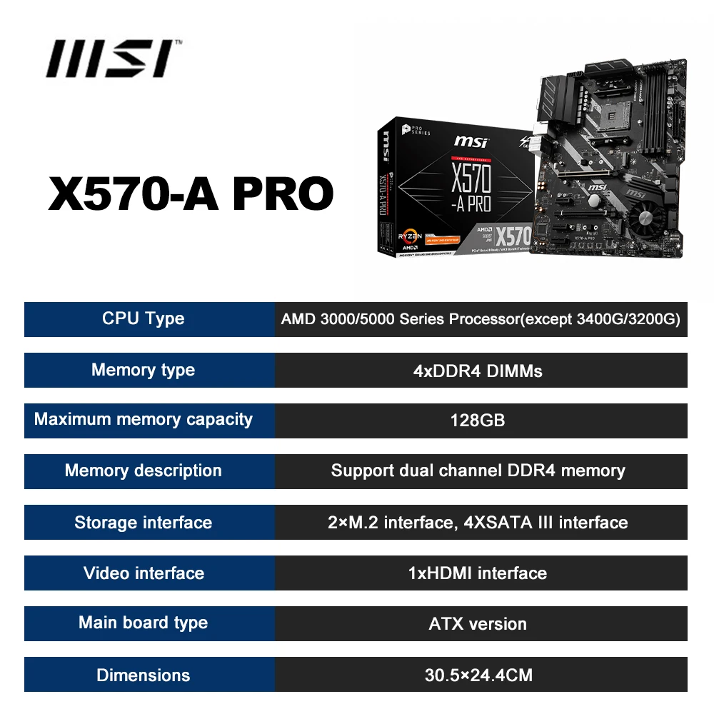 Comprar Placa base AMD Ryzen 7 5700X R7 5700X Cpu + MSI X570-A PRO AMD X570 AMD X570 128GB DDR4 PCI-E 4,0 M.2 SATA3 ATX