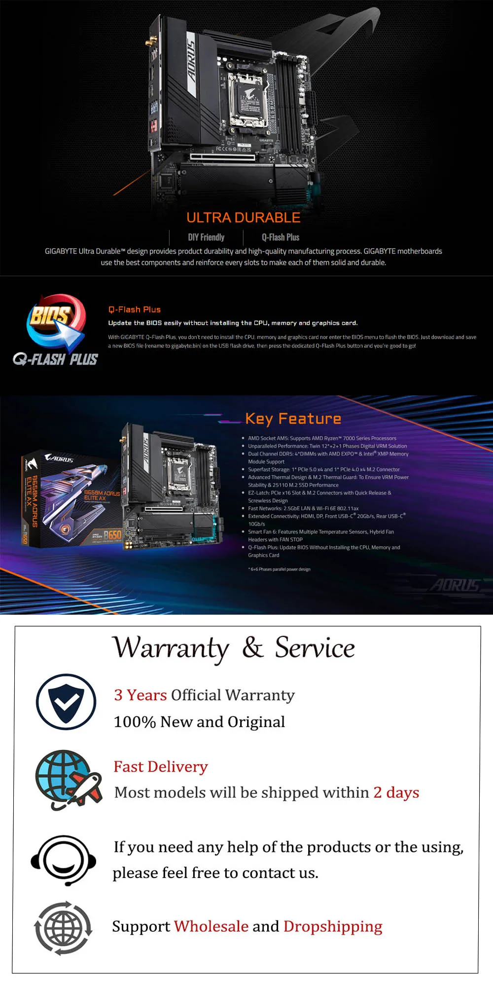 Modelo de placa base:HACHA ELITE AORUS B650M(100% nuevo y original)