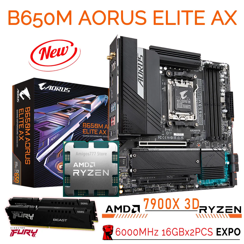 Comprar Placa base AMD Ryzen 9 7900X 3D CPU Combo + Gigabyte B650M AORUS ELITE AX AM5 AMD B650 + Kingston RAM DDR5 6000MHz 32GB EXPO Suit