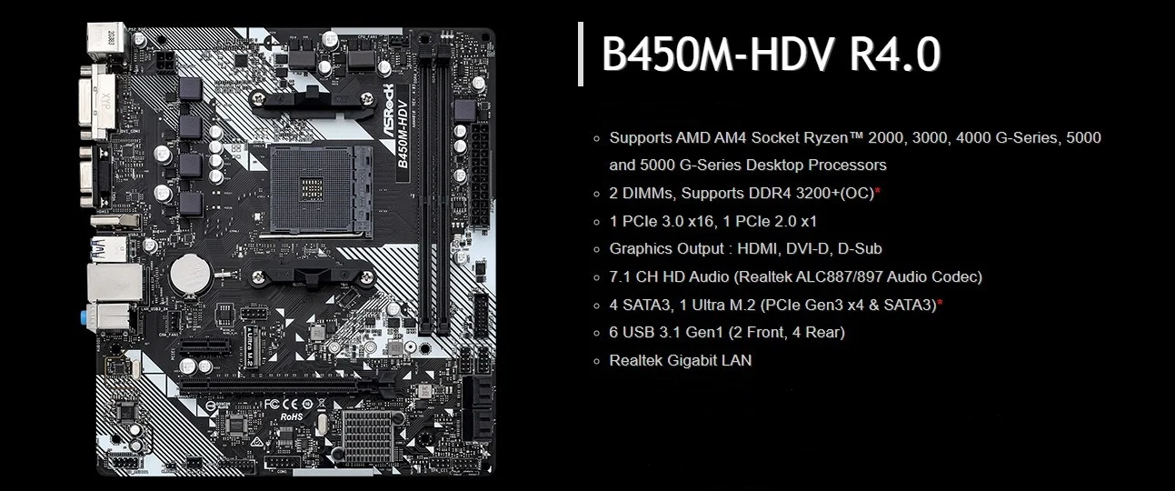 Comprar Placa base ASRock B450M-HDV R4.0 2xDDR4 memoria DIMM M.2 NVME SATA3 AM4 compatible con CPU Ryzen 5 5600 5600G R7 5700X3D